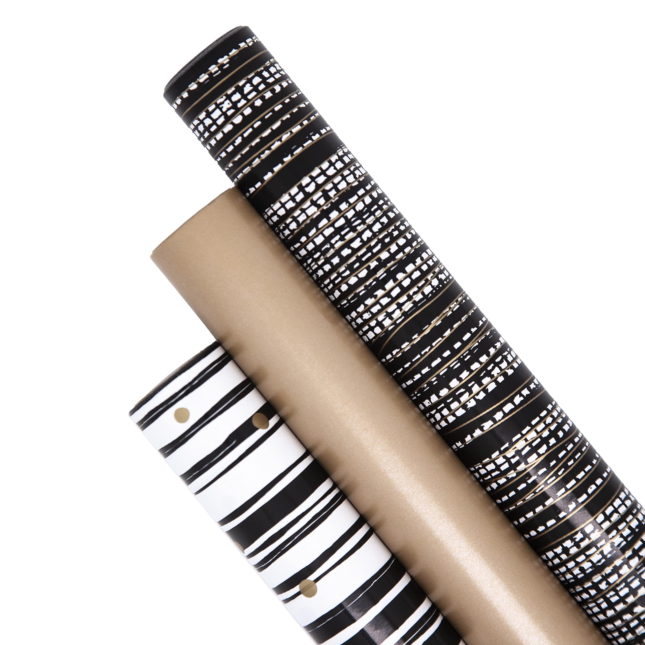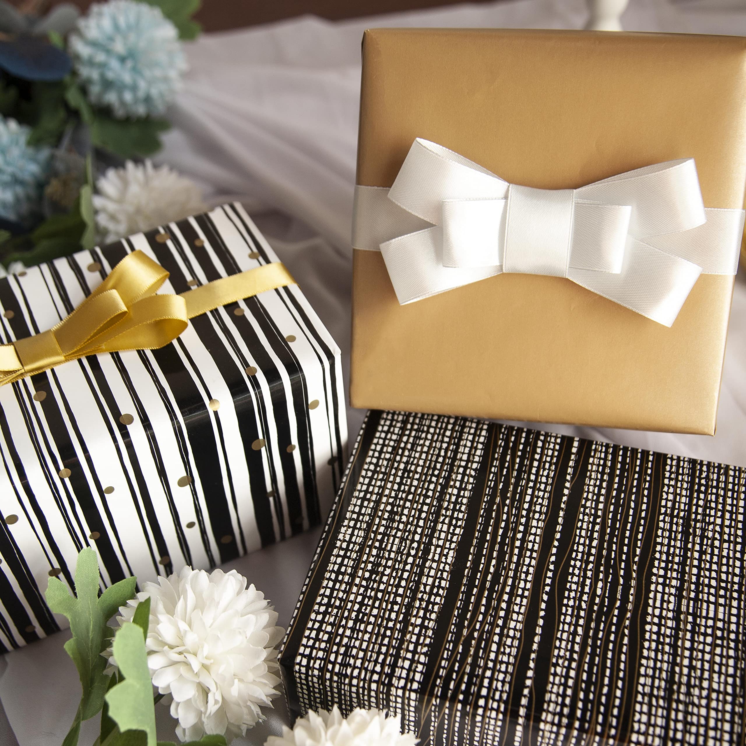 Ticced Rotolo Di Fogli Da Regalo Set Oro Nero, Carta Pacchi Da Natalizi