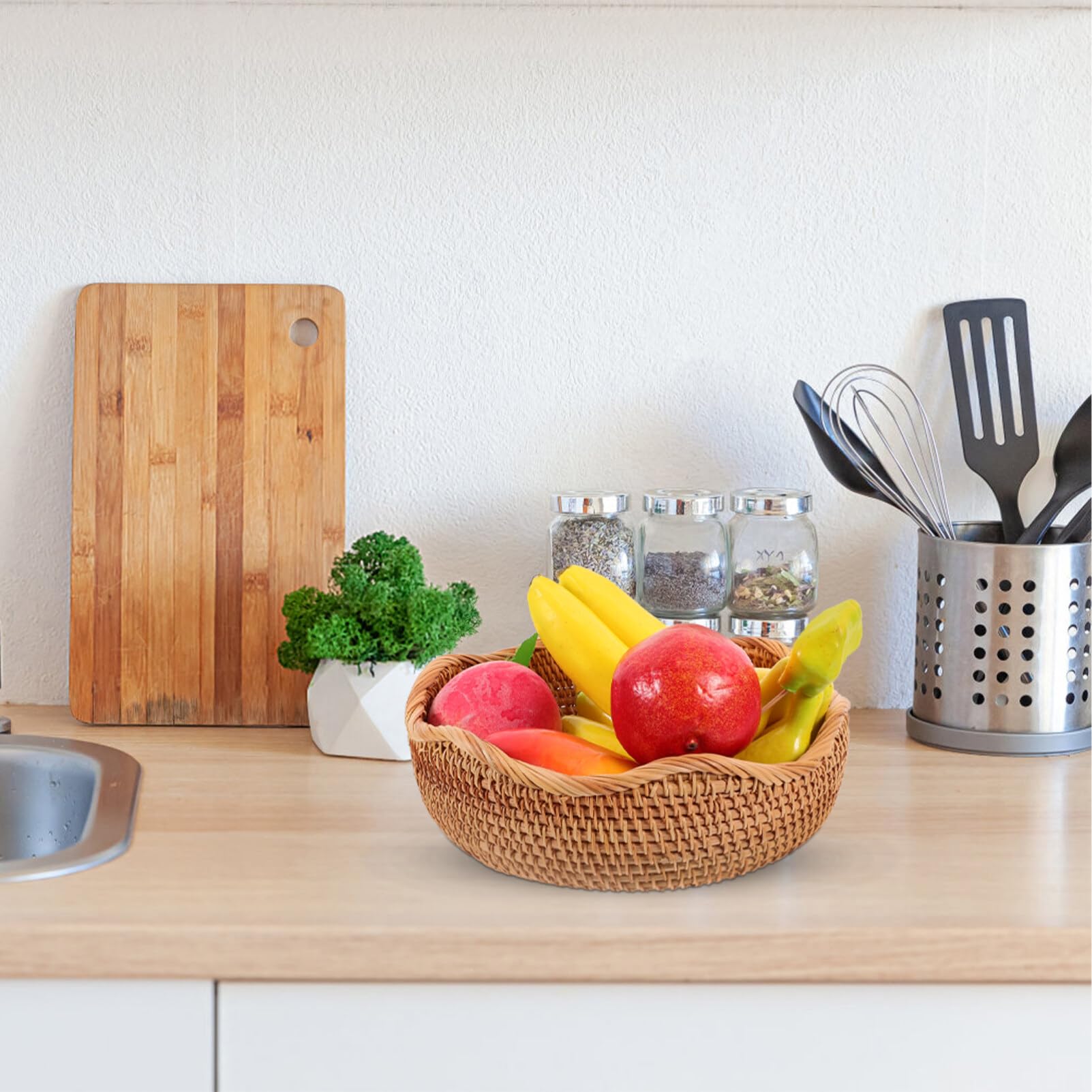 1pc, Ciotola Di Frutta In Rattan, Cesto Di Verdure In Legno, Cesto Di