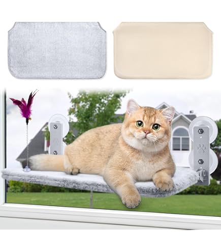 Amaca Per Gatti Da Finestra Pieghevole Amaca Gatto Finestra, Amac Di Gatto Montata Sulla Finest Con Ventosa Forte Tappetino Copertura Spessa Rimovibile, 52 * 30cm, Fino A 18 Kg(Beige) : Amazon.it: Prodotti