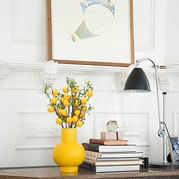 Ghirlanda Fiori Finti 51cm Ramo Di Limone Artificiale Vivido Giallo Finto Limone Fiori Artificiali Realistici Materiale ecologico: realizzato in schiuma di alta qualità e materiale plastico, ramo di ferro pieghevole e robusto, resistente e leggero, lavabile e di lunga durata, piacevole al tatto e dai colori vivaci. Compra Keebgyy 6 rami di limone artificiali da 50,8 cm, 5 limoni finti gialli vivaci con foglie verdi, puntelli per balcone, casa, festa di nozze, decorazione da giardino. SPEDIZIONE GRATUITA su ordini idonei. Passa a. Contenuti principali Informazioni su Dimensioni: ogni ramo di limone è alto circa 51 cm. Ampio utilizzo: perfetto per insegnare stampi, oggetti di scena fotografici, pittura artistica, ufficio, casa, giardino, libreria, caffetteria, showroom, hotel, bar, caffetteria, negozio di abbigliamento, feste di nozze, ecc. Consigli caldi: poiché i rami possono deformarsi durante il trasporto, è sufficiente aprire delicatamente i rami, il che non influirà sull'utilizzo. I limoni artificiali gialli vivaci e le foglie verdi rendono la tua stanza piena della bellezza dei fiori. A differenza dei veri rami di frutta, i rami di limone possono rimanere vivi e freschi per molti anni senza bisogno di cure o preoccuparsi di appassimento.