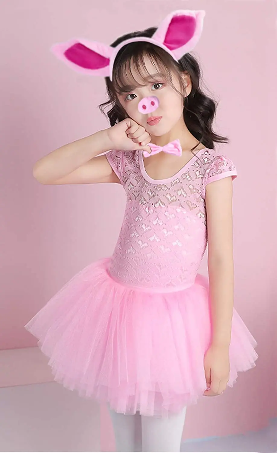 SGBETTER 14 Pezzi Di Maiale Costume Set Orecchie Di Maiale Fascia Coda Di Maiale Naso Papillon Guanti Tutù Rosa Animali Accessori Costume Per Maiale Feste A Tema Cosplay
