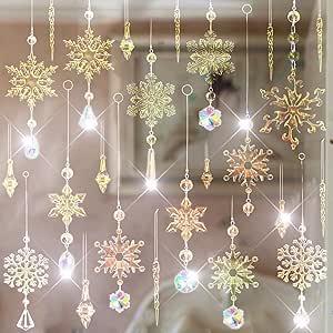 FLOFIA 24pz Fiocchi Di Neve Da Appendere Albero Di Natale Fiocco Di Neve Plastica Glitter Ornamenti Decorazione Natalizia Fai Da Te Per Finestra Vetrina Matrimonio Compleanno Natale Roso