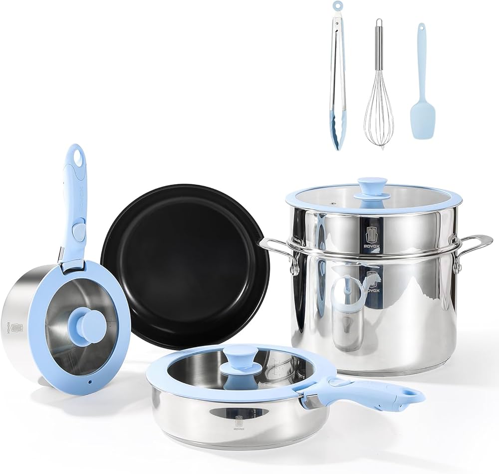 ROYDX - Set Di Pentole E Padelle A 3 Strati, In Acciaio Inox 18/10, Con