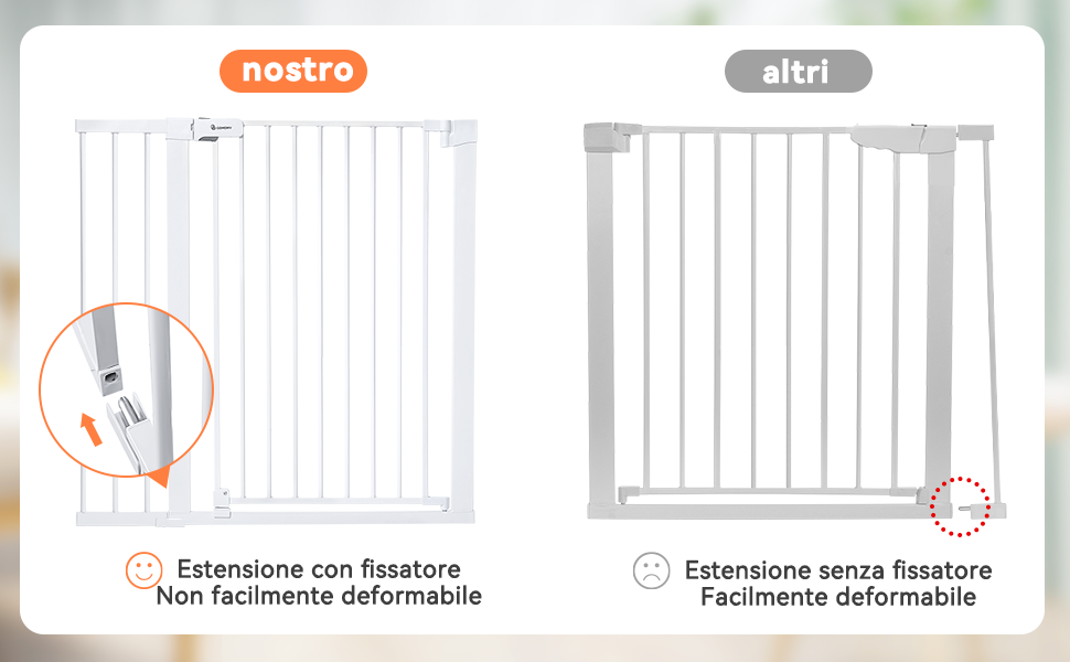 Installazione in un unico punto: Il facile puntamento con l'adesivo in dotazione e i piedini mobili trovano la posizione perfetta che desideri. Sia all'interno che all'esterno, il tuo cortile o le scale della tua casa possono utilizzare tutti Comomy barriera di sicurezza retrattile. PawHut Cancellino per Cani Regolabile con 2 Estensioni in Acciaio e Doppio Blocco, 77-105x120cm, Bianco ... Cancello di sicurezza per bambini cancello automatico in metallo 75 -103 cm , cancello per scale barriera per cani e gatti - Bianco ... Porta Centr Cancelletto Stufa Per Bambini Sonnewelt Cancelletto Per Bambini 310 Cm, Cancello Per Cani, Griglia Di Protezione Per Porta, 5 Pezzi, In Metallo, Per Bambini E Animali Domestici, Colore: Bianco Cancelletti Per Cani Da Interno Riduci il tuo tempo di preoccupazione. Design retrattile silenzioso: Il miglioramento tecnico riduce l'attrito della barriera di sicurezza dei bambini, riducendo il rumore della retrazione della rete. Una sicurezza nascosta per bambini non lascia alcuna possibilità ai tuoi bambini di aprire facilmente la barriera estensibile per cani. Controllo di una sola mano: Una sola pressione per azionare il blocco. Molteplici utilizzi: La struttura integrata è più stabile e le gambe mobili si adattano a pavimenti irregolari come i battiscopa.