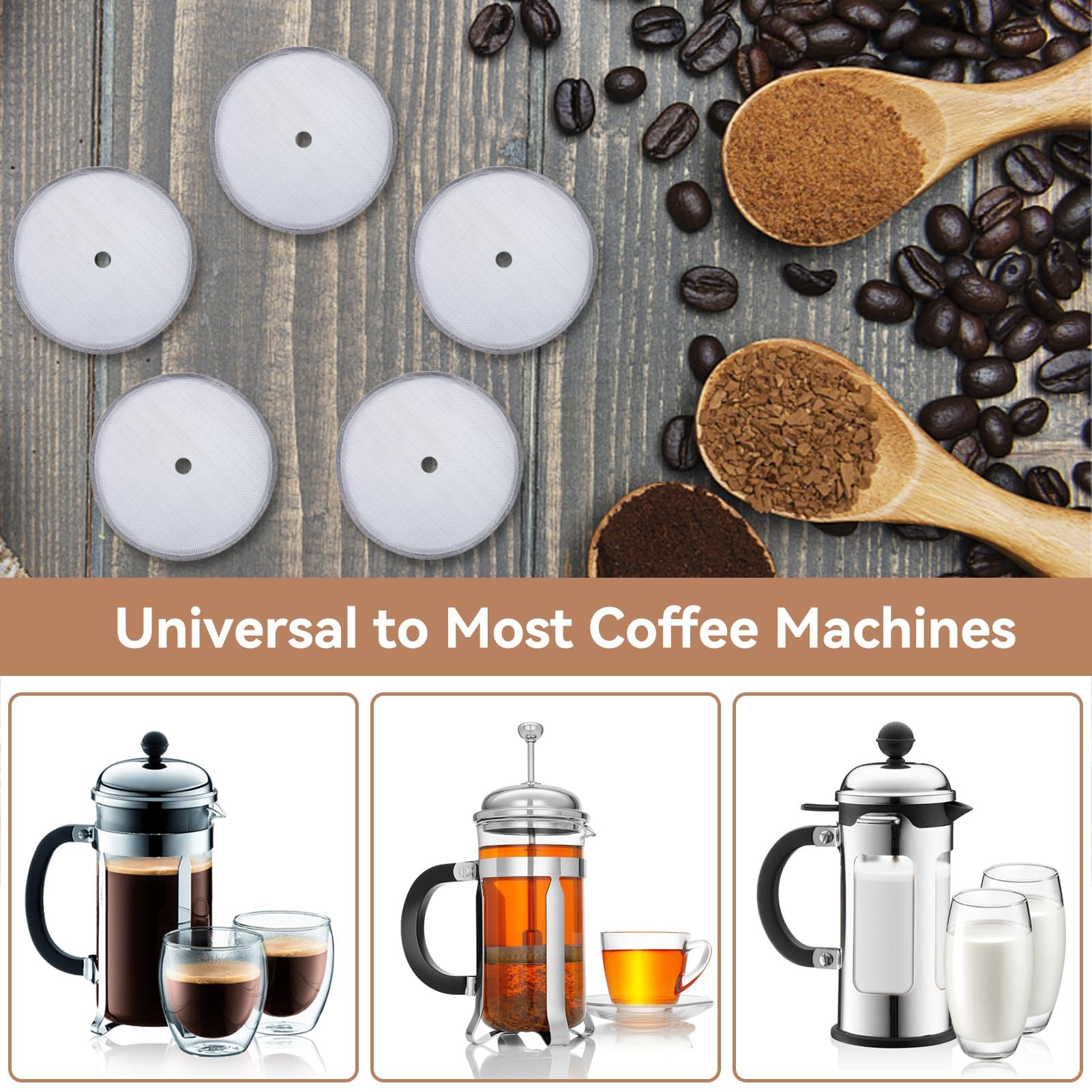 6 Pezzi Filtri Di Ricambio Per French Press, Filtri In Rete Di Acciaio