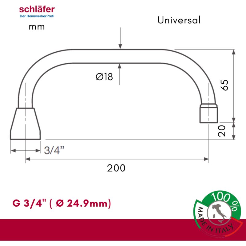 Schläfer 401010 Canna Di Ricambio Universale Per Rubinetto Cucina Parete A S, Ghiera 3/4 (diam24
