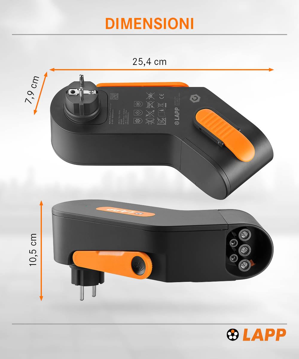LA VARIANTE SALVASPAZIO Il cavo a spirale di LAPP è un cavo di ricarica particolarmente compatto che può essere semplicemente sfilato fino alla lunghezza desiderata. Dovrebbe essere facile, semplice e divertente! Cavo Elettrico Lapp Mobility Cavo Di Ricarica Di Tipo 2, Fino A 11 KW, 7 M, Nero Cavo A Spirale Elettrico MADE IN GERMANY: Progettato e prodotto in Germania secondo gli standard IEC/EN. Grazie alla forma a spirale, il cavo non poggia sul pavimento ed è protetto dallo sporco. Protezione affidabile del sistema di ricarica del tuo veicolo in varie condizioni Ecco perché lavoriamo ogni giorno per sviluppare soluzioni di ricarica che siano proprio così: facili da usare, flessibili e in futuro anche digitali! RESISTENTE ALLE INTEMPERIE: presenta un connettore a doppia tenuta per proteggere dall'umidità e garantire una ricarica costante, anche sotto la pioggia. Non ci si dovrebbe preoccupare di ricaricare un'auto. PRESTAZIONI DI RICARICA VELOCE: carica il tuo veicolo elettrico in modo rapido ed efficiente con il nostro cavo di ricarica per veicoli elettrici a spirale da 11 kW, che fornisce fino a 20 A e alimentazione trifase per una ricarica rapida e affidabile a casa o presso stazioni di ricarica pubbliche Tensione nominale: 440 V CA, trifase La nostra storia è un esempio straordinario del successo della globalizzazione delle medie imprese tedesche. DESIGN DELLA SPINA L'alloggiamento della spina è composto da due parti. Dotata di un'impugnatura ergonomica, la spina sta saldamente nel palmo di ogni mano. PRODOTTO IN GERMANIA Il nome LAPP è sinonimo di soluzioni di connessione innovative come nessun'altra. Compatibile con tutti i veicoli ibridi ed elettrici europei, garantendo una connessione continua con qualsiasi stazione di ricarica per veicoli elettrici pubblica o privata I veicoli possono essere ricaricati fino a 20 A trifase. Si ritrae nella sua forma originale dopo l'uso, garantendo una facile conservazione e prestazioni di lunga durata La funzionalità del cavo si mantiene a lungo grazie alla struttura estremamente robusta e resistente agli urti. PROTEZIONE ROBUSTA: Costruito con protezione IP55, il cavo resiste alla polvere, allo sporco e alla penetrazione dell'acqua, rendendolo adatto all'uso esterno in tutte le condizioni atmosferiche. Intervallo di temperatura consentito: da -40 °C a +50 °C Vogliamo rendere la mobilità elettrica accessibile a tutti. Davvero a tutti! Grado di protezione: IP55 con ulteriore impermeabilità longitudinale, esente da alogeni, ritardante di fiamma e resistente all'olio Connessioni: Tipo 2 su entrambi i lati In meno di 50 anni, una piccola azienda innovativa di Stoccarda è diventata leader mondiale nel settore della tecnologia dei cavi.