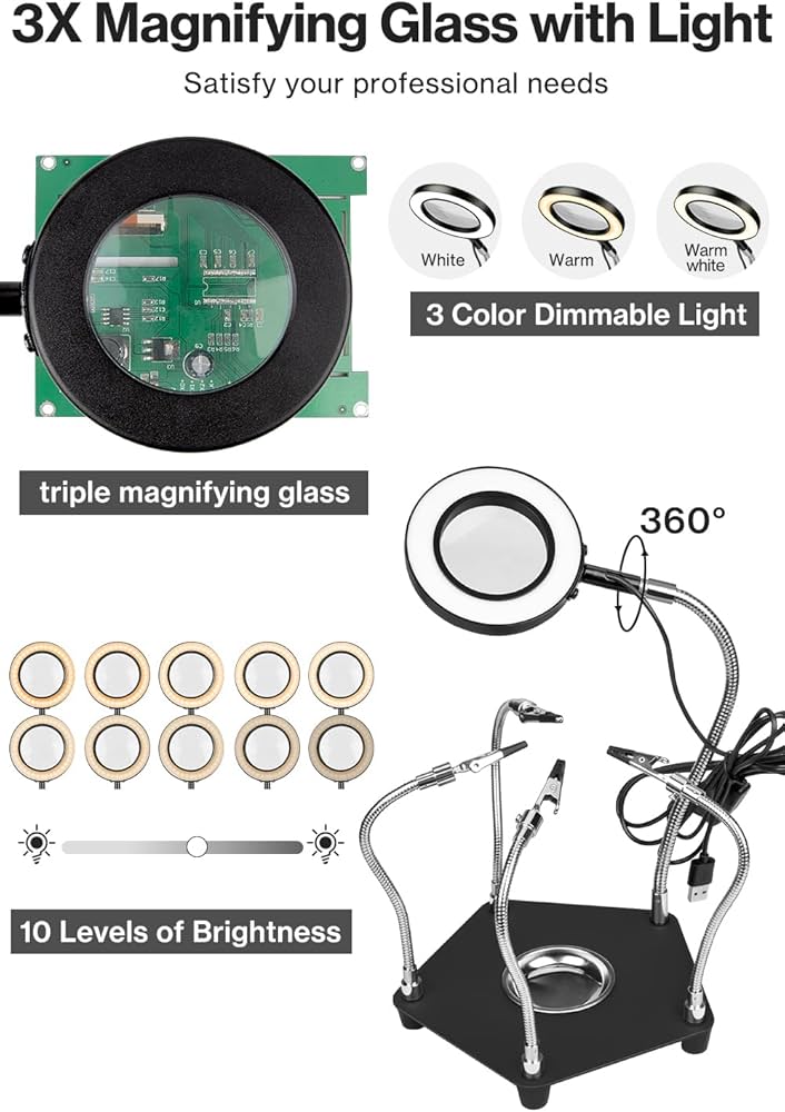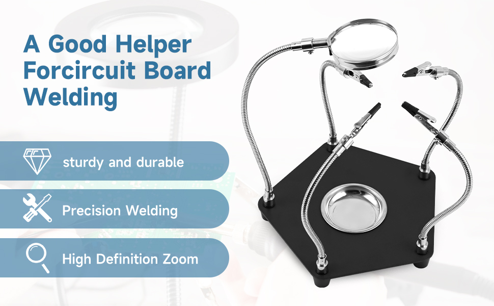 Kit Saldatura Stagno Stazione Di Saldatura Per Strumenti Di Riparazione Per Saldatura A 5 Supporto Per Saldatura Terza Mano Ausilio di saldatura versatile con lente d'ingrandimento 3x. La base zavorrata con piedini in gomma anti-spaccatura garantisce stabilità ai tuoi progetti. STAZIONE DI Saldatura Di Terza Mano Con Lente D'Ingrandimento 3X E 4 Bracci Fl - EUR 29,99. IN VENDITA! Perfetto per la saldatura, il fissaggio di circuiti stampati, l'assemblaggio, la riparazione, 267145913471 Le clip a coccodrillo rotanti a 360 gradi possono afferrare saldamente i tuoi materiali e sono facili da manovrare.