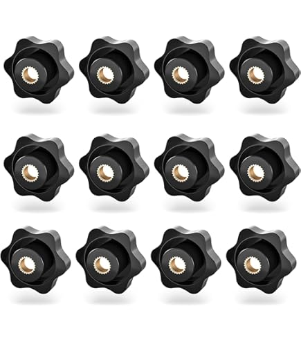 Facile da usare: la manopola di serraggio del dado a stella è filettata per un facile avvitamento nel meccanismo. Afferrare saldamente le filettature dei bulloni in modo che non si allentino facilmente. Può essere utilizzato direttamente avvitando l'asta Applicazione: ampiamente usato per mobili, scaffali, stand, attrezzature per il fitness, pubblicità, attrezzature mediche, attrezzature meccaniche, strumenti e apparecchi, linee di assemblaggio elettroniche e così via. Diametro testa a stella: 40 mm, diametro filettatura femmina: M8, altezza totale: 28 mm. Manopola Filettata Concisea 10 Pezzi M8 Pomello A Stella,Manopola A Stella Vite Di Serraggio Con Filettatura Femmina,Manopole Di Serraggio Nere A Stella Per Macchine Utensili,Mobili Pomelli Per Cassetti Forma a stella: ideale per le regolazioni manuali nell'ingegneria meccanica, sostituire la manopola delle maniglie vecchie o rotte. Robusto e durevole: manopola di serraggio del filo in bachelite nera di alta qualità e ottone, tecnologia di stampaggio a iniezione, manopola con testa a forma di stella, bell'aspetto, durevolezza e isolamento, ruggine e resistenza alla corrosione.