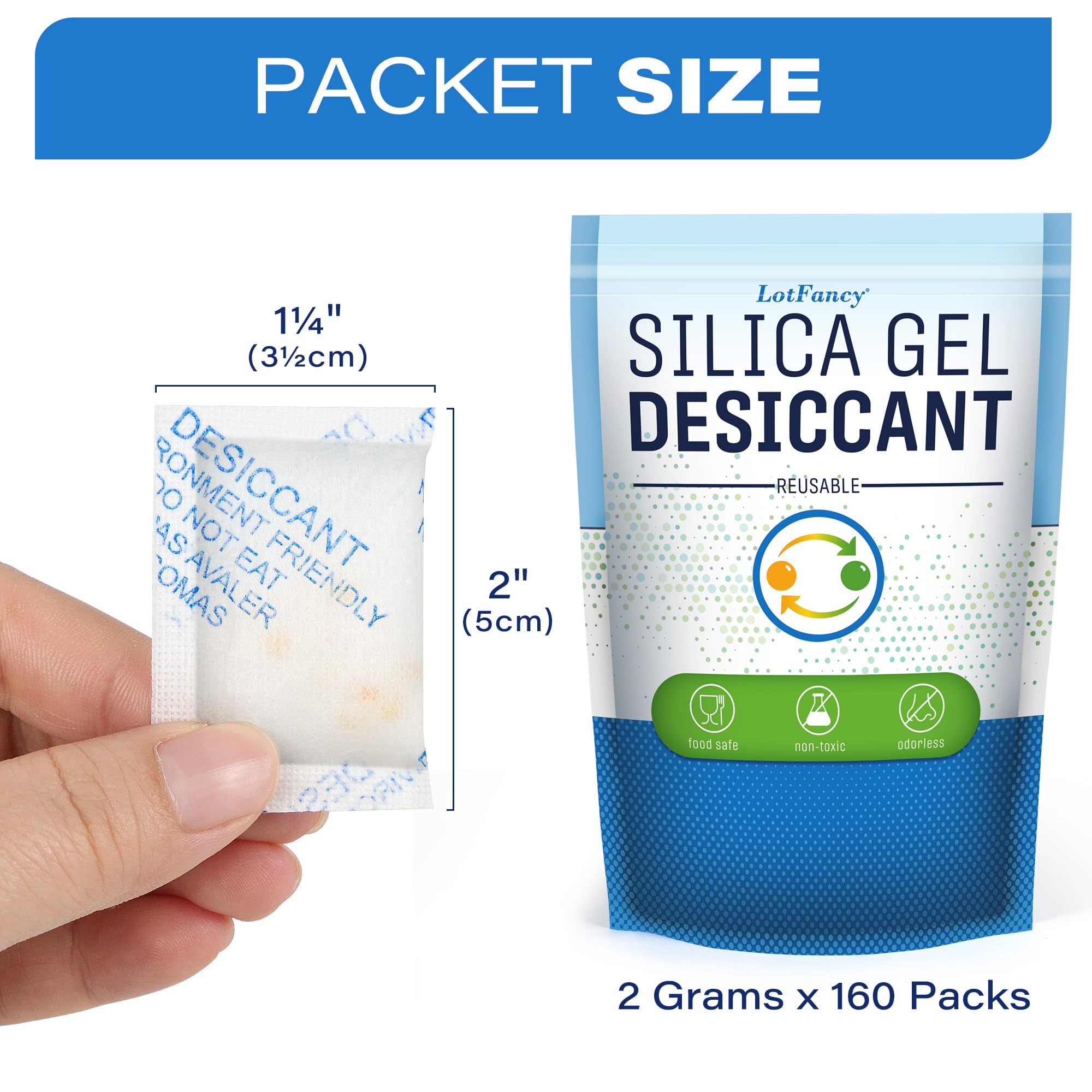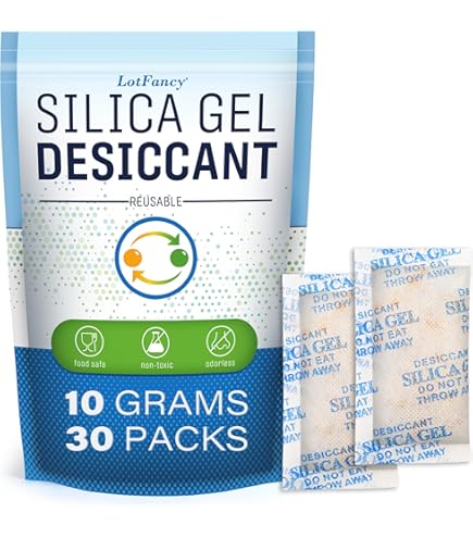 Ridurre la formazione di muffa, muffa, odori e corrosione nei computer e nelle apparecchiature elettroniche, gioielli, macchine fotografiche, lenti, giacche di pelle, scarpe di cuoio, libri, album fotografici, elettronica, giocattoli, elettrodomestici ecc. Tessuto Non Tessuto Silica Gel 300 Bustine Gel Di Silice Indicati 0.5G Ad Ogni Assorbi Umidità La Confezione Include: Confezione da 0.5g x 300 Confezioni Mantenere sempre tutto asciutto e in buone condizioni. Ridurre la formazione di muffa, muffa, odori e corrosione nei computer e nelle apparecchiature elettroniche, gioielli, macchine fotografiche, lenti, giacche di pelle, scarpe di cuoio, libri, album fotografici, elettronica, giocattoli, elettrodomestici ecc Piccoli ma Utili: I sacchetti disidratanti forniscono il massimo assorbimento di umidità, prevengono muffe, ruggine, funghi, corrosione e deterioramento degli alimenti Rimuovere la batteria o eventuali schede di memoria, se presenti. Le perle continueranno a sentirsi e ad apparire asciutte. Sicuro e Non Tossico: Gel di silicio pura senza cloruro di cobalto, sono confezionati in sacchetti Tyvek, ecologici e sicuri da usare I pacchetti di gel di silice impediscono la formazione di grumi di sale o zucchero, mantenendo croccanti patatine, cracker e cereali. Proteggi i tuoi oggetti di valore: combatti umidità, muffa, muffa con pacchi disseccanti per computer e attrezzature di valore, gioielli, macchina fotografica, lenti, giacche di pelle, scarpe di cuoio, libri, album fotografici, elettronica, giocattoli, CD, DVD, ecc. Elimina muffa, condensa e controlla l'umidità. Mantieni il tuo cibo più fresco: il deumidificatore in gel di silice LotFancy assorbe l'umidità ed elimina la muffa nei tuoi cioccolatini e prelibatezze al forno, mantenendo gli alimenti asciutti. Proteggi i Tuoi Oggetti di Valore I pacchetti di gel di silice proteggono la fotocamera, i vestiti, le scarpe, le borse, i documenti e le foto importanti, i gioielli, gli oggetti da collezione, gli strumenti di metallo, le pistole e altri oggetti di valore da muffe, ruggine, appannamento e deterioramento. Conservazione di Alimenti e Medicinali Ottimo per conservare medicine, vitamine, semi, noci, carne secca, snack, biscotti e alimenti per animali domestici. Multiusi: assorbitore di umidità aiuta a mantenere le scarpe, il bagagliaio, il filamento della stampante 3D, la fotocamera, il contenitore, la pistola, le casseforti, i vestiti, la batteria, la sneaker, l'armadietto, i documenti importanti e le foto, l'elettronica, i semi, il cibo, i gioielli condizione, ideale per l'uso in contenitori, marine, garage, cantina, armadio, armadietto, barca, cassetto, cassetta degli attrezzi, cucina e altri posti che possano aver l'umidità Sacchetto Imballaggio Richiudibile: I pacchetti di silica gel sono confezionati nella busta richiudibile, conveniente da conservare e utilizzare