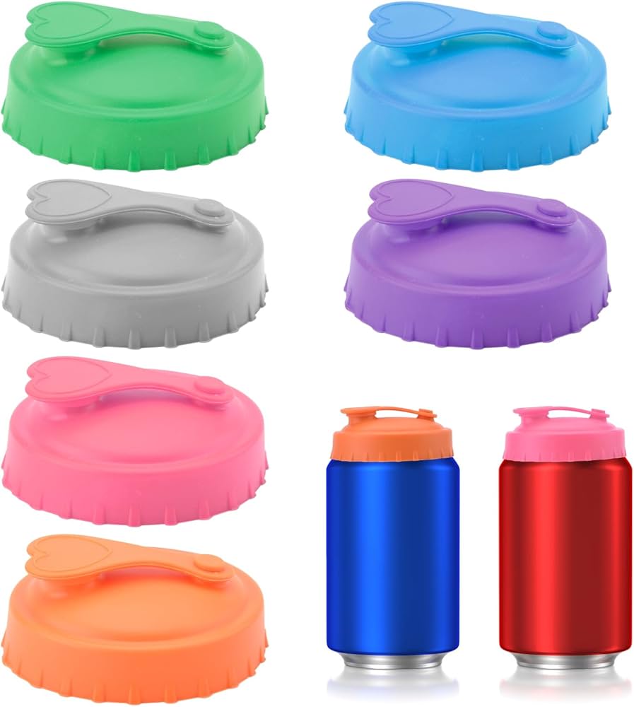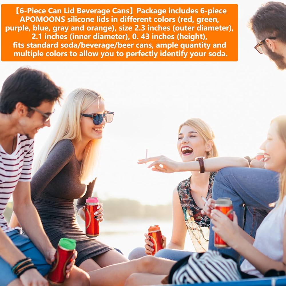 APOMOONS 6 Barattoli Di Silicone Per Lattine Di Bevande, Coperchi Per Lattine Di Cola, Resistenti Alla Polvere, Riutilizzabili, In Silicone, Rosso, Verde, Viola, Blu, Grigio, Arancione