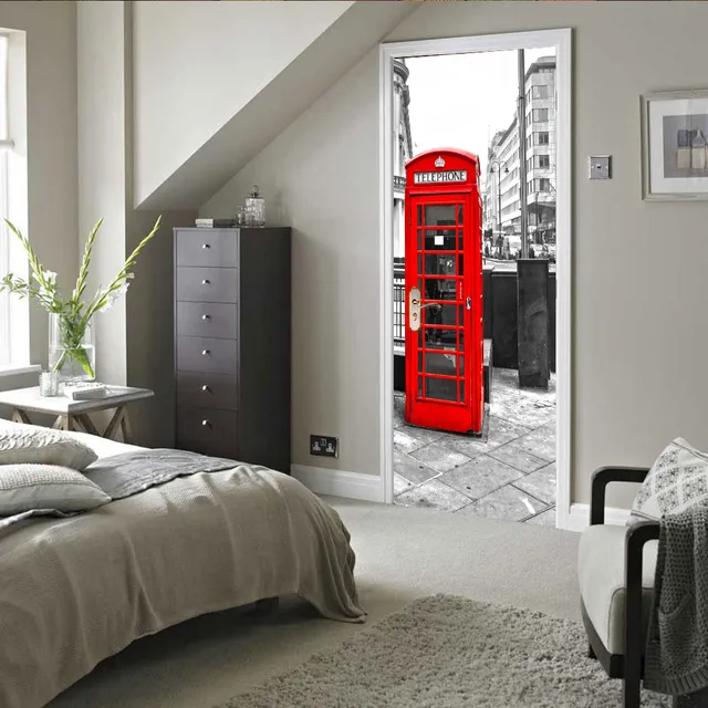 Adesivi Per Porte Stampati In 3D Scena Di Strada Della Città Europea Adesivi Per Porte Generali Impermeabili In Pvc Murales Fai-Da-Te Decorazione Domestica Autoadesiva 90 X 200 Cm - Foto Della Porta