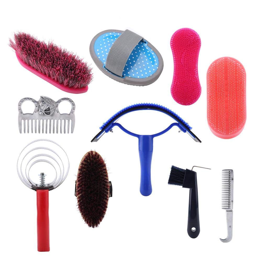 10-IN-1 Set Di Strumenti Per La Toelettatura Del Cavallo Kit Di Pulizia Pettine Per Coda Di Criniera Massaggio Spazzola Per Curry Raschietto Per Il Sudore Hoof Pick Pettine Per Curry Scrubber - AliExpress
