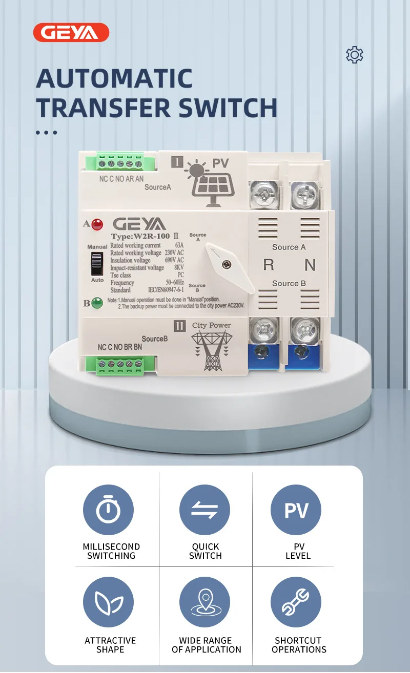 Mdnncdje Corrente Solare Fotovoltaica ATS Interruttore Di Trasferimento Automatico Guida DIN 2P 63A AC220V ATS-PV Corrente Di A Corrente Urbana : Amazon.it: Commercio, Industria E Scienza