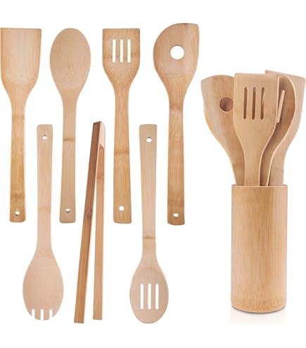 Versatili: ogni strumento per ogni piatto - per cucinare salse, pesce, carne, patate, e altro In set: costituito da cucchiaio in legno, mestolo, spatola, mestolo forato e una paletta Porta Utensili Da Cucina Relaxdays Set Di Utensili Da Cucina, 35 Accessori Per Cucinare Spatole Mestoli Pinze Portamestoli Grigio E Legno 85214791 Porta Coltelli Cucina Per avere sempre a disposizione ogni sorta di gadget da cucina. Non adatto al lavaggio in lavastoviglie, lavare solo a mano. Dettagli: ogni cucchiaio è lungo 30 cm - dimensioni H x L x P: 16 x 10 x 10 cm ca. Con questo set sarai pronto a cucinare dei piatti da gourmet. Sia che decida di preparare una zuppa, uno stufato o una bistecca succosa, con questo kit avrai sempre ciò di cui hai bisogno Misurano circa 30 cm e sono a portata di mano nel contenitore di bambù (circa 10 x 10 x 16 cm) dove possono essere stivati. Bambù: materiale ecologicamente sostenibile che è estremamente robusto e leggero. In bambù: resitente e delicato sulla pentole - niente graffi e non aggressivi su strati antiaderenti