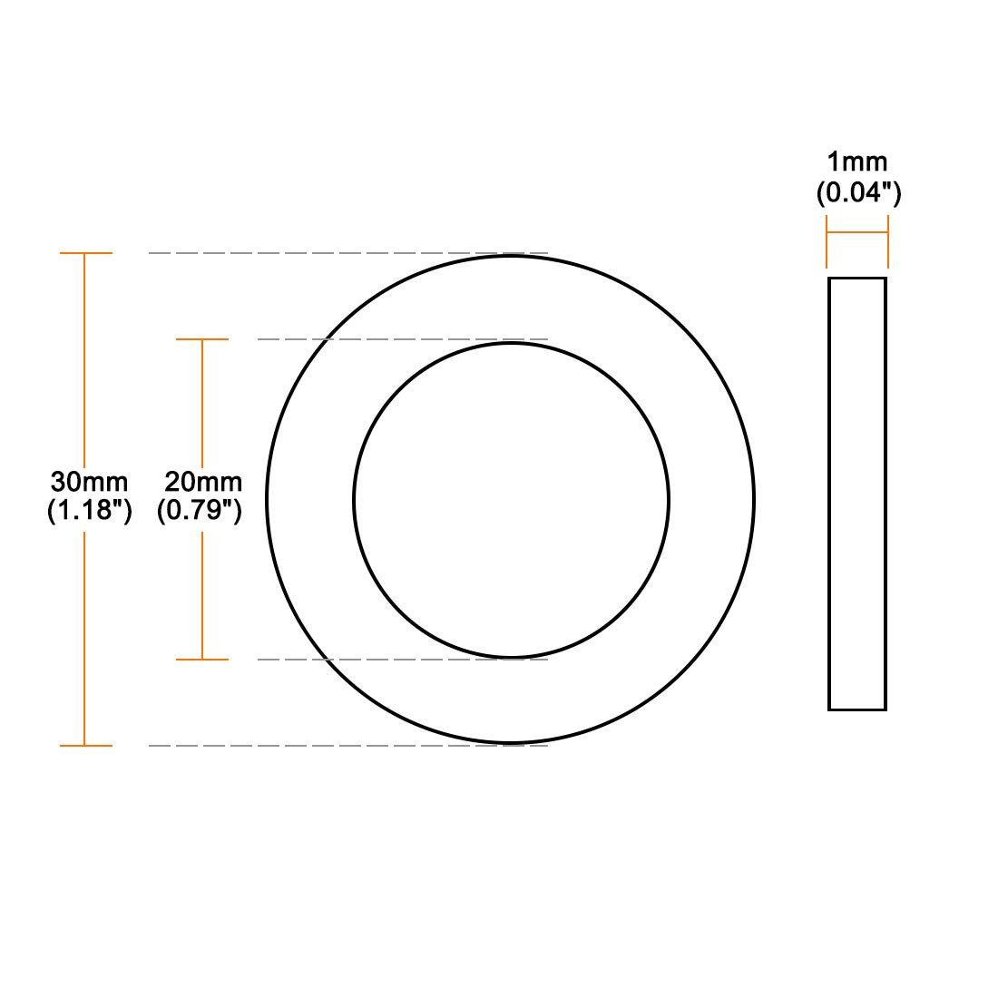 Inoltre, le rondelle piatte aiutano a fissare il dado fornendo una superficie uniforme, riducendo al minimo la possibilità di allentamento a causa di un contatto irregolare. Questa superficie di contatto più ampia supporta e distribuisce il carico, proteggendo la superficie sottostante dall'usura. Rondelle In Acciaio Per Piane Sourcing Map Rondelle Piatte M30 In Acciaio Inossidabile, Diametro Interno 30 Mm X Diametro Esterno 56 Mm X Spessore 4 Mm Di Spessore, Rondelle In Rondelle Rame Descrizione: Materiale: queste rondelle piatte, realizzate in rame, offrono una resistenza alla corrosione superiore e un'eccellente conduttività. Distribuiscono il carico esercitato da bulloni filettati, viti e dadi, garantendo una superficie portante liscia. Contenuto della confezione: 24 rondelle piatte. La loro durata li rende per applicazioni esterne. Ampia applicazione: questi raccordi a rondella piatta trovano un'applicazione diffusa in connessioni elettriche in diversi settori, elettrodomestici e commerciali, industrie automobilistiche e marine, sistemi di alimentazione e installazioni idrauliche. Specifiche tecniche: Nome dell'articolo: Rondelle piatte Materiale: rame.