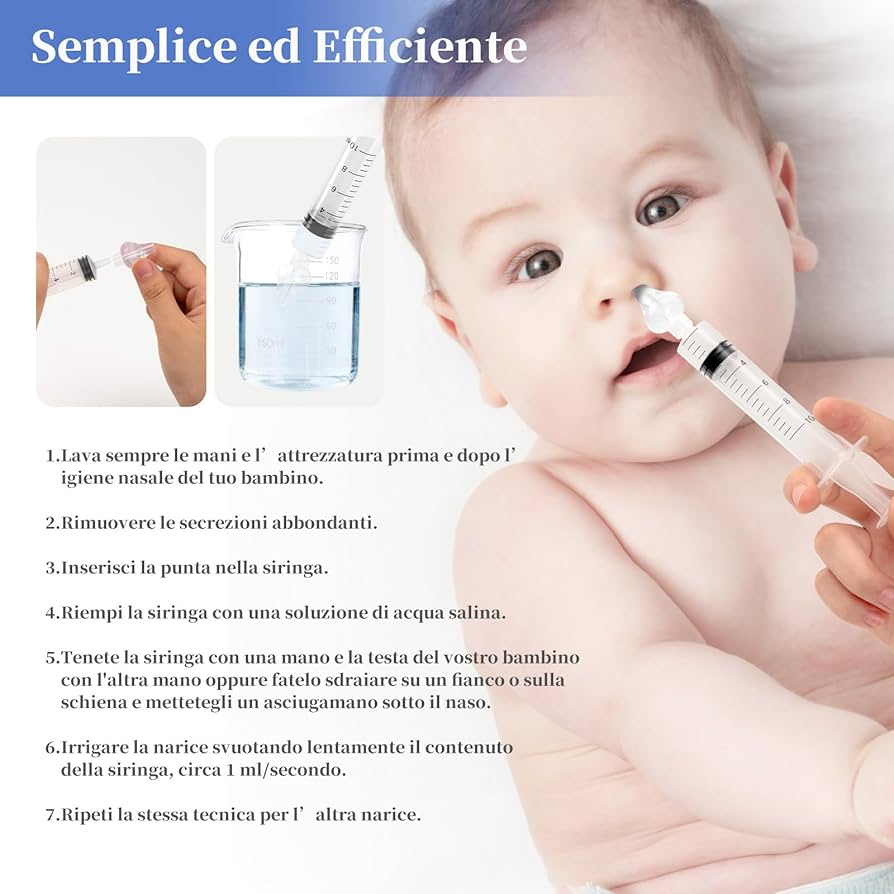 Grande Capacità da 10 ml: La siringa per lavaggi nasali bambini capacità da 10 ml fornisce un volume sufficiente per un'irrigazione nasale completa senza frequenti rabbocchi Design ergonomico: Olive Nasali, design curvo per evitare danni accidentali alle narici Contenuto dell'imballaggio: 2 Pezzi da 10 ml con 4 Beccucci Nasali, 1 spazzolino e 1 pinzetta di plastica Siringhe Lavaggio Nasale Neonato Diboniur Siringa Per Lavaggi Nasali Bambini, 2 Pezzi Olive Nasali Per Rinoway Doccia Nasale Ideali per alleviare il naso chiuso senza stress o fastidi. Soluzione Delicata per Bambini: Le nostre siringhe nasali sono progettate con punta morbida in silicone, offrendo un lavaggio nasale delicato e sicuro per neonati e bambini.
