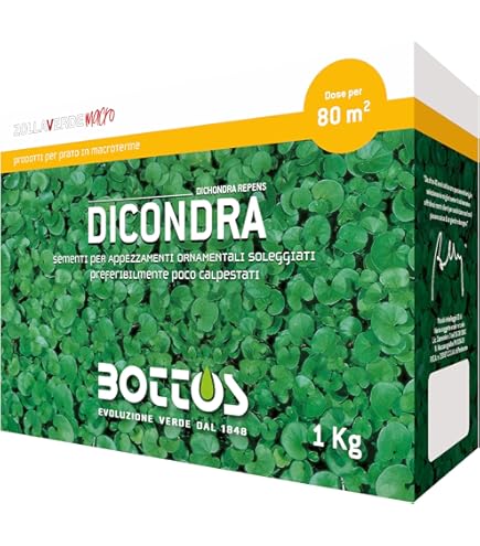 MODO D'USO: Distribuire i semi per prato resistente uniformemente a mano o con uno spargitore su prato asciutto e tagliato. L'effetto finale è una morbida moquette naturale composta da piccole foglie carnose di forma tondeggiante e di colore verde brillante. Semi Prato Resistente Flortis Dichondra Repens. Semi Per Prato Resistenti Alla Siccità Dicondra Repens Prato CARATTERISTICHE: Essenza perenne, semi prato resistente alla siccità che non richiede eccessive irrigazioni e tosature. La dichondra repens semi adora la luce del sole, ma può essere seminata anche in zone d'ombra poichè garantisce copertura uniforme e resistente del prato ombreggiato. Fidati del Made in Italy di qualità. dichondra prato taglia seenti repens see grai giardino Una pianta tappezzante, soluzione ideale per chi desidera un prato denso senza bisogno di costante manutenzione poichè raggiunge una altezza massima di circa 3 cm. EFFICACIA AL SOLE E ALL'OMBRA: confezione da semi per prato 250g fino a 25m². Periodo di applicazione: da maggio a ottobre, 2-3 volte all'anno. COMPOSIZIONE: Dichondra Repens 100%.