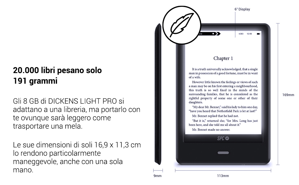 Amazon.com: SPC Dickens Light 2 Pro – 6 Inch Touch Screen E-Book Reader | Adjustable Brightness And Colour Temperature | 8GB Over 8,000 Books | 1 Month Battery Life | Lightweight Slim