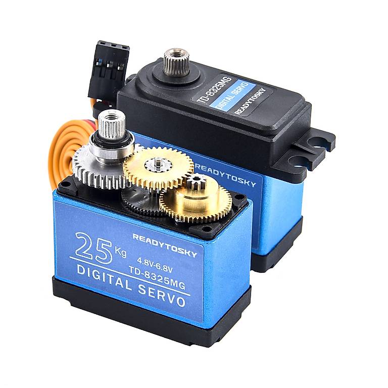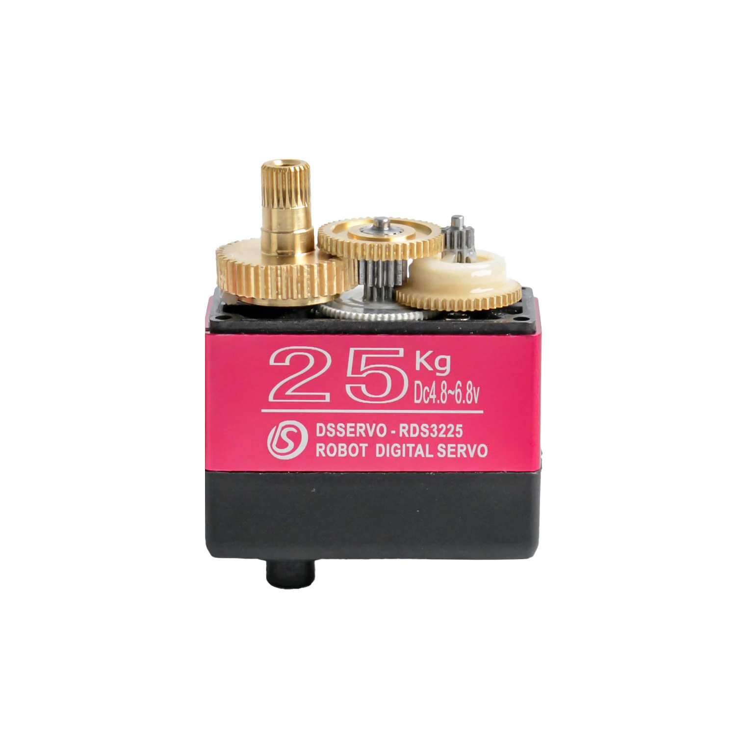 Ds3225 Servo Digital Metal Servomotor Binghe 2 Stücke 25KG Servo Motor Digitaler Aliante Rc Alta coppia in uscita:Questa servo digitale con ingranaggi in metallo da 25 kg è stato progettato per applicazioni ad alta coppia, che lo rendono ideale per bracci robotici, auto RC e barche. Design impermeabile IP66: Il servo è classificato come impermeabile IP66, adatto a varie condizioni ambientali difficili, estendendo la gamma di applicazioni e la durata del prodotto. Precise PWM Control: 25KG digital servo supports PWM (Pulse Width Modulation) control with a pulse width range of 500-2500μs, ensuring fast and accurate servo response Supporto multitensione:Servomotore compatibile con una gamma di tensioni di lavoro da 3,7V a 7,2V, compatibile con varie configurazioni di alimentazione, fornendo opzioni di alimentazione più flessibili.