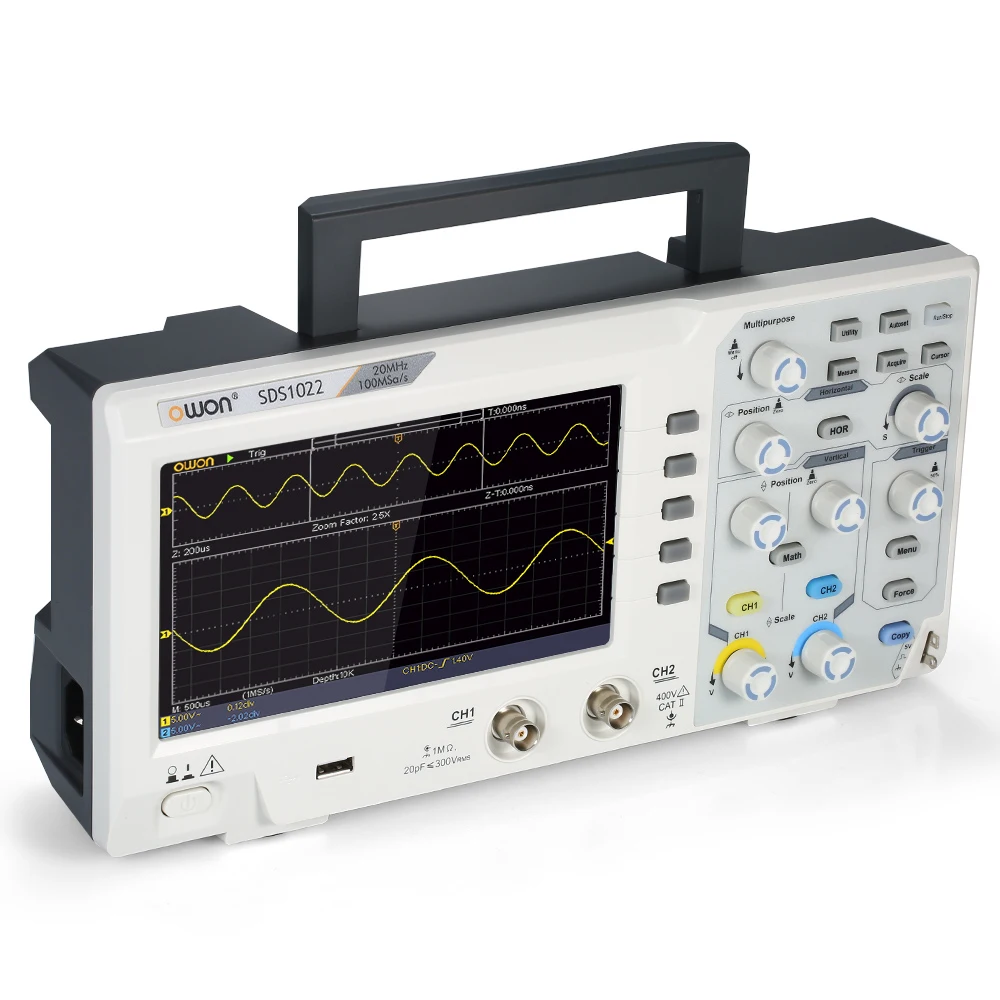Inoltre, fornisce anche la funzione FFTrms che supporta lo stile rettangolare, Hamming, Hanning e Black-harris. Un clic, tutto il valore di misurazione proviene da 30 opzioni di auto-misura, comode per visualizzare le informazioni sulla forma d'onda. Oscilloscopio Portatile VEVOR Multimetro Oscilloscopio Digitale Frequenza Di Campionamento 1 GS/s Larghezza Di Banda 100 MHz, Oscilloscopio Digitale 4 Canali Schermo LCD Per Misurazione Del Segnale Algoritmi Matematici FFT | VEVOR IT Owon Sds1102 Specs Quindi, oscilloscopio ultraportatile con un volume di 301 x 152 x 70 mm, design del corpo ultrasottile, spessore di 70 mm, peso di 1,1 kg, risparmio di spazio sulla scrivania, design ultra silenzioso. Funzione zoom della forma d'onda Aprire la modalità zoom della forma d'onda. ha 30 tipi di funzioni di misurazione automatica e può personalizzare il menu di misurazione; ha la funzione di intercettazione della forma d'onda e può essere collegato senza problemi con i generatori di segnale della stessa marca. · Oscilloscopio ampiamente usato - Con molteplici funzioni di trigger e 30 tipi di funzioni di misurazione automatiche, Vpp, Vavg, RMS, frequenza, periodo, Vmax, Vmin, Vtop, Vbase, larghezza, Overshoot, pre-sparo, ecc, si applicano per il debug del circuito elettronico, test del circuito, progettazione, istruzione e formazione, manutenzione e test dell'automobile. Facile da usare per la progettazione, produzione e manutenzione di dispositivi elettronici. · Multi-funzione -- Funzione di memorizzazione della forma d'onda, 16 insiemi di forme d'onda possono essere salvati nella memoria interna o nel disco di U. Caratteristiche: Larghezza di banda 100 MHz. Frequenza di campionamento 1GS / s. Intervallo base temporale: 2ns / div ~ 100s / div. Tempo di salita 3,5ns Funzione cursore automatico La funzione automatica del cursore può misurare rapidamente la differenza tra due punti della forma d'onda, aiuta gli ingegneri ad analizzare la forma d'onda di misura in tempo reale. Specifiche di OWON SDS1102 La finestra di zoom è una porzione ingrandita dell'area selezionata nella finestra principale. Trova rapidamente i parametri di misurazione senza doverli aggiungere manualmente. Soddisfa le esigenze dei tuoi amici, dipendenti o studenti provenienti da diversi paesi. Applicare al debug del circuito elettronico; collaudo di circuiti; progettazione e produzione; istruzione e formazione; manutenzione e collaudo di automobili. Funzione di archiviazione della forma d'onda 16 insiemi di forme d'onda possono essere salvati nella memoria interna o nel disco U. Funzione unica di registrazione e riproduzione della forma d'onda. Supporto Multi-Languauge Supporto cinese, inglese, russo, tedesco, spagnolo, francese, italiano, giapponese 8 lingue, ed è dotato di istruzioni in 8 lingue. Comunicazione e controllo remoto del computer tramite il dispositivo USB. Funzione di analisi dello spettro FFT integrata Conversione FFT dal dominio del tempo al dominio della frequenza. Caratteristica: · Oscilloscopio di archiviazione professionale - OWON SDS1102 Oscilloscopio di archiviazione digitale super economico, convenienza, SCPI e LabVIEW supportati, portata 2CH di larghezza di banda 100MHz, frequenza di campionamento 1GS/s, alta risoluzione a 8 bit. L'unità di analisi FFT di questo oscilloscopio SDS1102 è la tensione è più intuitiva rispetto alla visualizzazione decibel (db) degli oscilloscopi tradizionali. Nota: La forma d'onda gialla è la forma d'onda misurata corrente, la forma d'onda blu è la forma d'onda salvata. 【Frequenza di campionamento 1GS/s】 Memorizzazione dell'oscilloscopio Owon delle configurazioni della forma d'onda e della forma d'onda dell'interfaccia e della riproduzione della configurazione.