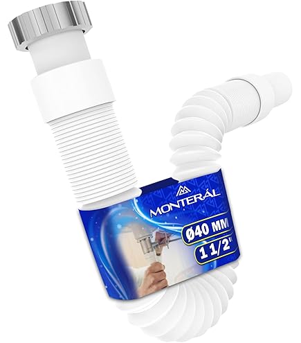 Flessibile Sifone Lavandino Cucina Lavandino Bagno e Bidet Dimensioni 1 1/2 x 40 mm Completo di Dado in Ottone e O-ring - Garanzia di 10 Anni - MONTERAL GARANTIRE IL CORRETTO ALLINEAMENTO - È essenziale posizionare il tubo flessibile del lavabo in modo che la sezione curva rimanga sempre piena d'acqua, creando una barriera efficace contro i gas FLESSIBILE - Grazie al design a coste regolabili, il sifone per lavello cucina si adatta in lunghezza, rendendolo ideale per l'installazione in spazi ridotti o irregolari dove un sifone fisso per lavandino non sarebbe idoneo Sifone Bidet Flessibile Sifone Dimensioni 1 1/2 X 40 Mm Completo Di Dado In Sifone Flessibile Per Lavabo Il tubo di scarico presenta un ingresso da 1 1/2 e un'uscita con diametro di 40 mm CARATTERISTICHE - Sifone flessibile per lavandino cucina, adatto per lo scarico di lavabi bagno e bidet, completo di dado in ottone e guarnizione O-ring.