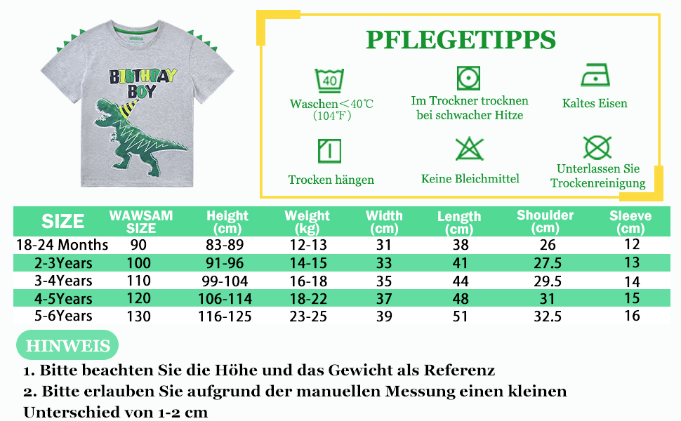 WAWSAM Dinosauro Compleanno Ragazzo Maglietta Bambini Dino T Shirt
