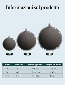 Immergi la pietra porosa nell'acquario per due ore per ottenere risultati ottimali e puliscila regolarmente per mantenere prestazioni ottimali. Facile da Regolare: puoi modificare la dimensione delle bolle tramite regolazione manuale e regolare l'apporto di ossigeno in base alle effettive esigenze. PIETRA AD ARIA per Acquario, Acquario Diffusore Di CO2 Kit , Diffusore Silenzioso - EUR 20,99. IN VENDITA! Quando le bolle scoppiano nell'acqua, il rumore viene ridotto. Molte piccole bolle 316666127074 Facile da Usare: la pietra ad aria per acquario affonda rapidamente nell'acquario, rimane stabile e non galleggia. Migliora notevolmente il tasso di dissoluzione dell'ossigeno nell'acqua, riduce l'anidride carbonica e consente ai pesci di respirare più agevolmente. La pietra porosa per acquari funziona silenziosamente e non disturberà le creature nell'acquario, né il riposo o il sonno degli esseri umani. Cosa Ottieni: riceverai una pietra porosa nano per acquari da 80 mm, adatta per acquari di 50-100 centimetri quadrati. Descrizione prodotto Caratteristiche 1. La pietra porosa per acquari è realizzata in normale allumina fusa e sinterizzata ad alta temperatura, il che non causerà alcun effetto sulla salute degli organismi dell'acquario e può aiutare i pesci o le piante a crescere in modo sano. 2. La pietra per acquari misura 8x1,6 cm e pesa 170 g. La pietra porosa adotta un design convesso, con un'area di contatto più ampia e più bolle, adatta per acquari di varie dimensioni. Design Convesso: la pietra porosa per acquario è sinterizzata ad alta temperatura di 1360 gradi Celsius e ha una forte permeabilità. Pietre Per Acquario Boxtech Kit Pietra Ad Aria Per Acquario, Ultra Alto Ossigeno Disciolto Pietra Porosa, Diffusore Di Ossigeno Ultra Silenzioso Per Acquari E Idroponica, Accessori Per Pompe D'Aria(100mm) : Amazon.it: Prodotti Per Animali Domestici Pietra Per Acquario
