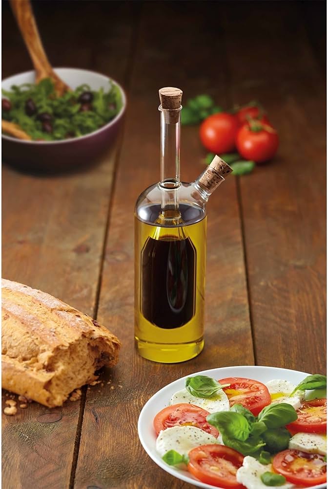 Dispenser per olio d'oliva e aceto, 2 in 1, bottiglia in vetro trasparente con tappo in sughero, erogatore di olio d'oliva, doppio contenitore in vetro per olio, barbecue e cucina E hanno un alto ornamentale, interessante. La sezione interna può contenere circa 60 ml, l'esterno può contenere circa 240 ml. Realizzato in vetro soffiato a mano, che consente di versare olio e aceto dalla stessa bottiglia mantenendo separati. Dimensioni: 17,5 x 5,5 cm. Può essere utilizzato per cocktail o altri vini, può essere utilizzato anche come bottiglia di olio d'oliva, o bottiglie di olio e aceto. Dispenser Olio INTIRILIFE 2-in-1 Dispenser Di Aceto E Olio In Vetro Con Due Aperture - 350 Ml / 60 Ml Capacità - 13 X 10.5 X 11.5 Cm - Bottiglia D'olio Con Tappo, Decorativa : Amazon.it: Casa E Cucina Contenitore Olio Da Cucina Dispenser unico di olio d'oliva angolato, riflusso senza gocciolamento, mantenendo la cucina asciutta e pulita.