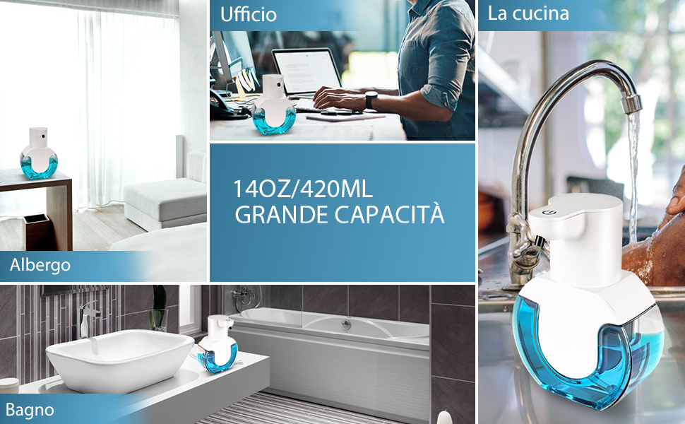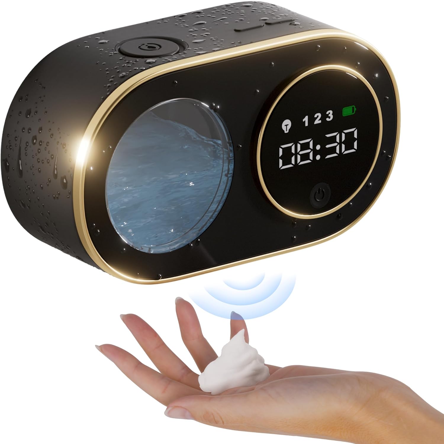 JOFLVA Dispenser Sapone Automatico, Con Sensore Infrarossi Dispenser Sapone muro, Usb Ricaricabile Dispenser Sapone Automatico Schiuma, Ipx5 Impermeabile, Adatto Per Cucina, Bagno, Hotel Tieni premuto finché la luce non lampeggia per spegnerlo. Il nuovo aggiornamento - distributore di sapone elettrico Batteria integrata di alta qualità, non è necessario sostituire la batteria, può essere caricata con un cavo USB e sono necessarie solo 3 ore per caricarsi completamente 4 livelli regolabili - il distributore di sapone senza contatto può essere regolato su quattro livelli, basta premere il pulsante di accensione (0,5 s/1 s/1,5 s/2 s) per passare rapidamente ed è inoltre dotato di due sfondi sospes Basta premere a lungo l'impronta digitale in alto per accendere il dispositivo. Dispenser Sapone Automatico Dispenser Di Sapone Automatico Da 400 Ml, Ricarica USB, Dispenser Di Sapone A Mani Libere Senza Porta Sapone Bagno Intelligente e conveniente - motore ad alte prestazioni, basso consumo energetico, design silenzioso con un solo pulsante.