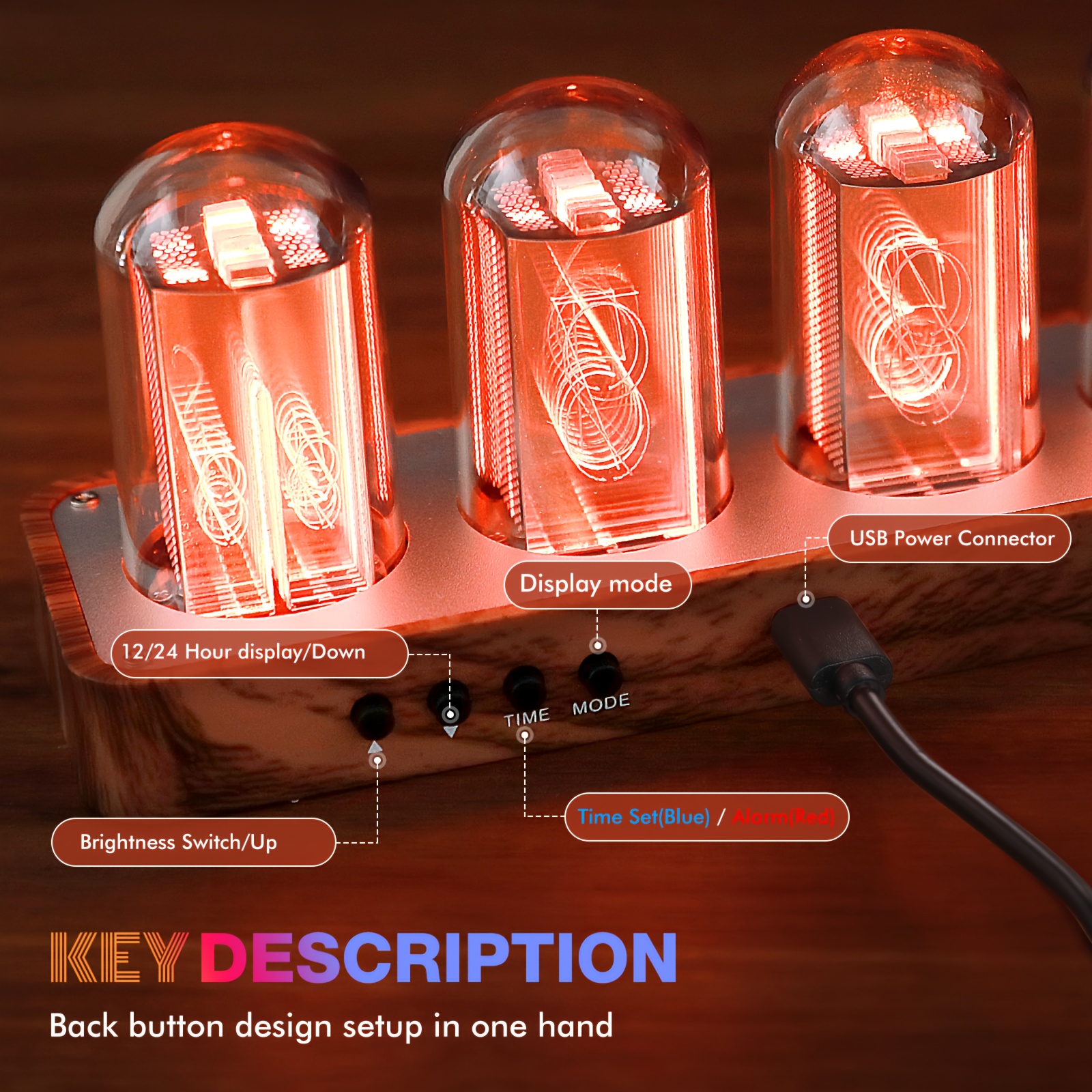 Funzione timer: il nuovo stile ha una funzione timer, il tempo massimo è di 99 minuti, che può soddisfare perfettamente le esigenze della vita quotidiana. [Colore e modalità di visualizzazione personalizzata] Adotta la sorgente luminosa RGB che consente di personalizzare ogni colore del gruppo di display con selezione RGB a colori e supporto modalità di controllo, modalità a colore singolo, modalità di visualizzazione alternativa monocromatica, modalità respirazione, modalità lampeggiante arcobaleno, modalità flusso d'acqua, adatta per una varietà di luoghi come camera da letto e ufficio. Orologio Nixie Tube Orologio digale in legno per camera da letto,Trova Dettagli e Prezzi su Sveglia digale , sveglia da tavolo da Orologio Nixie Tube Orologio digale in legno per camera da letto - Ningbo General Union Co., Ltd. Inizio Industria Legg Nixie Clock For Sale Orologio Retrò A Tubo Nixie, Orologio Digitale In Legno Per Camera Da Letto, Display 12/24 Ore, Guscio In Legno Massello, Regalo Vintage Per Decorare La Tua Scrivania E Camera Da Letto Led-nixie Clock Instructions