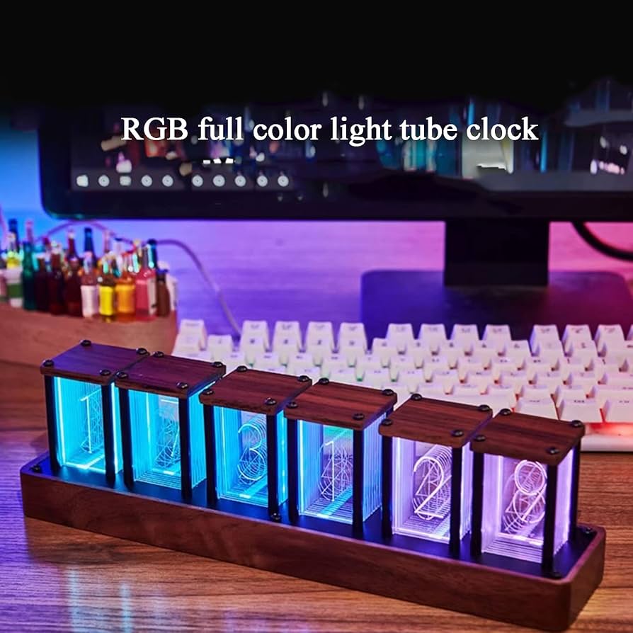 Orologio Retrò A Tubo Nixie, Orologio Digitale In Legno Per Camera Da Letto, Display 12/24 Ore, Guscio In Legno Massello, Regalo Vintage Per Decorare La Tua Scrivania E Camera Da Letto