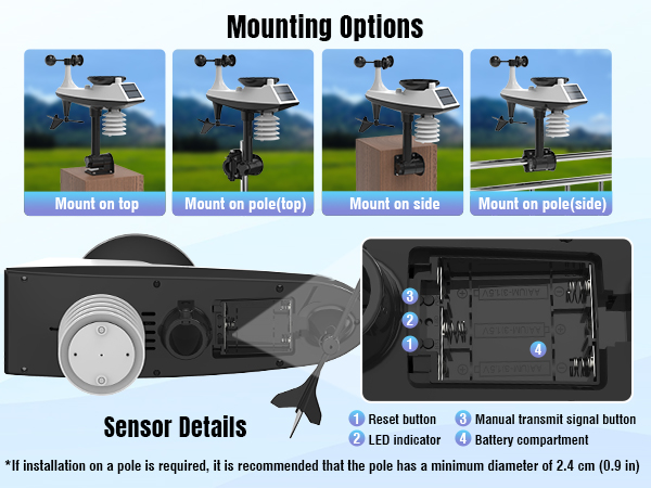 Misura i livelli UV e l'intensità del sole per aiutarti a prendere precauzioni per proteggere la pelle durante le giornate ad alta esposizione. Con una portata di trasmissione fino a 100 metri, fornisce dati meteorologici accurati dall'ambiente circostante 1 x Adattatore di alimentazione Ciò consente di monitorare le condizioni meteo locali e condividere facilmente i dati con la comunità vicina Le migliori offerte per MN6 Wi-Fi Stazione Meteorologica , Stazione Meteorologica Wireless 15 in 1 per In sono su Confronta prezzi e caratteristiche di prodotti nuovi e usati Molti articoli con consegna gratis Direzione e velocità del vento Con due opzioni di alimentazione: adattatore o batterie AA (non incluse), che offrono flessibilità e garantiscono un funzionamento continuo Stazione Meteo Con Sensore Esterno Uzoli Stazione Meteo Con Pluviometro Anemometro Display A Colori 7,4'' Temperatura Interna Esterna Umidità Pressione Dell'aria Previsioni Meteo 6 In 1 Sensore Esterno - EM3390D Pluviometro Wifi Monitoraggio UV e luce solare Doppia sveglia con funzione snooze: dotata di doppia sveglia e opzione snooze, questa stazione meteo ti aiuta a svegliarti in orario. Scegli tra 4 luminosità per adattarle al tuo ambiente e garantire una visibilità ottimale in diverse condizioni di illuminazione. (Solo adattatore) Monitoraggio meteo in tempo reale: con connettività WiFi migliorata, la console professionale MN6 sincronizza i dati in tempo reale con Weathercloud e Wunderground. Cosa c'è nella scatola? 1 x Consolle di visualizzazione Fornisce dati precisi in tempo reale sulla velocità e la direzione del vento, consentendo una pianificazione sicura di attività all'aperto. 1 x Sensore esterno integrato 1 x Manuale utente