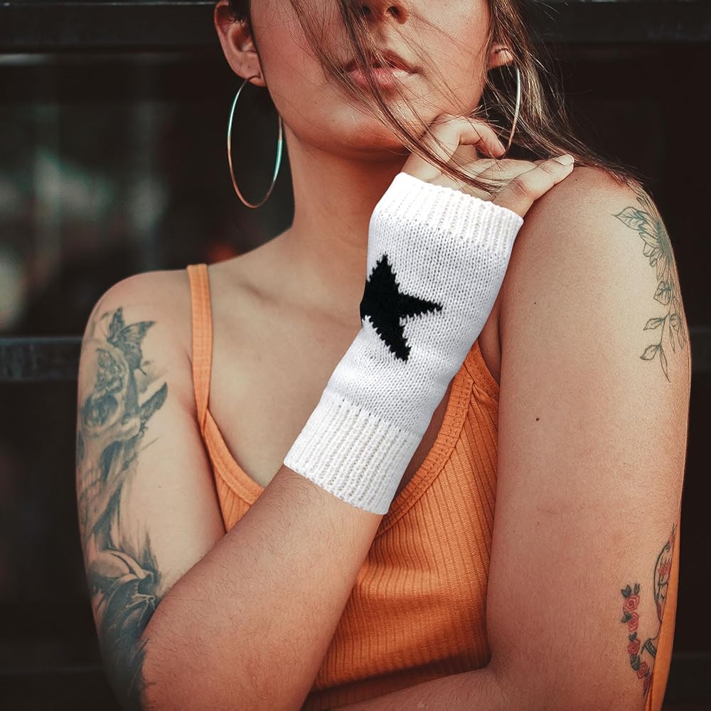 YAMEIZE Fingerless Con Motivo A Stella Senza Dita - Guanti Per Donna Uomo Arm Warm Y2K Guanti A Stella Da Braccio All'aperto