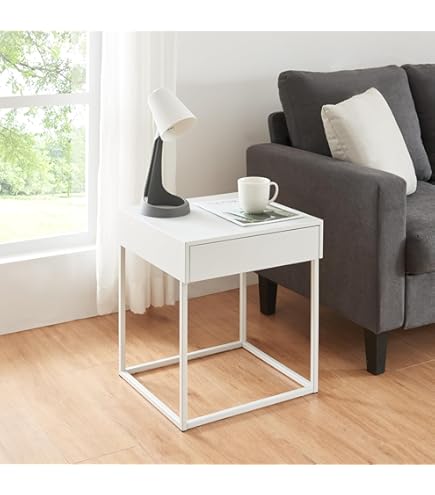 Comodino In Acciaio Tavolino Da Divano 51 X 40 X 40 Cm Tavolino Basso Con Piano Vetro Temperato Cubo Bianco Opaco [en.casa] | Leroy Merlin
