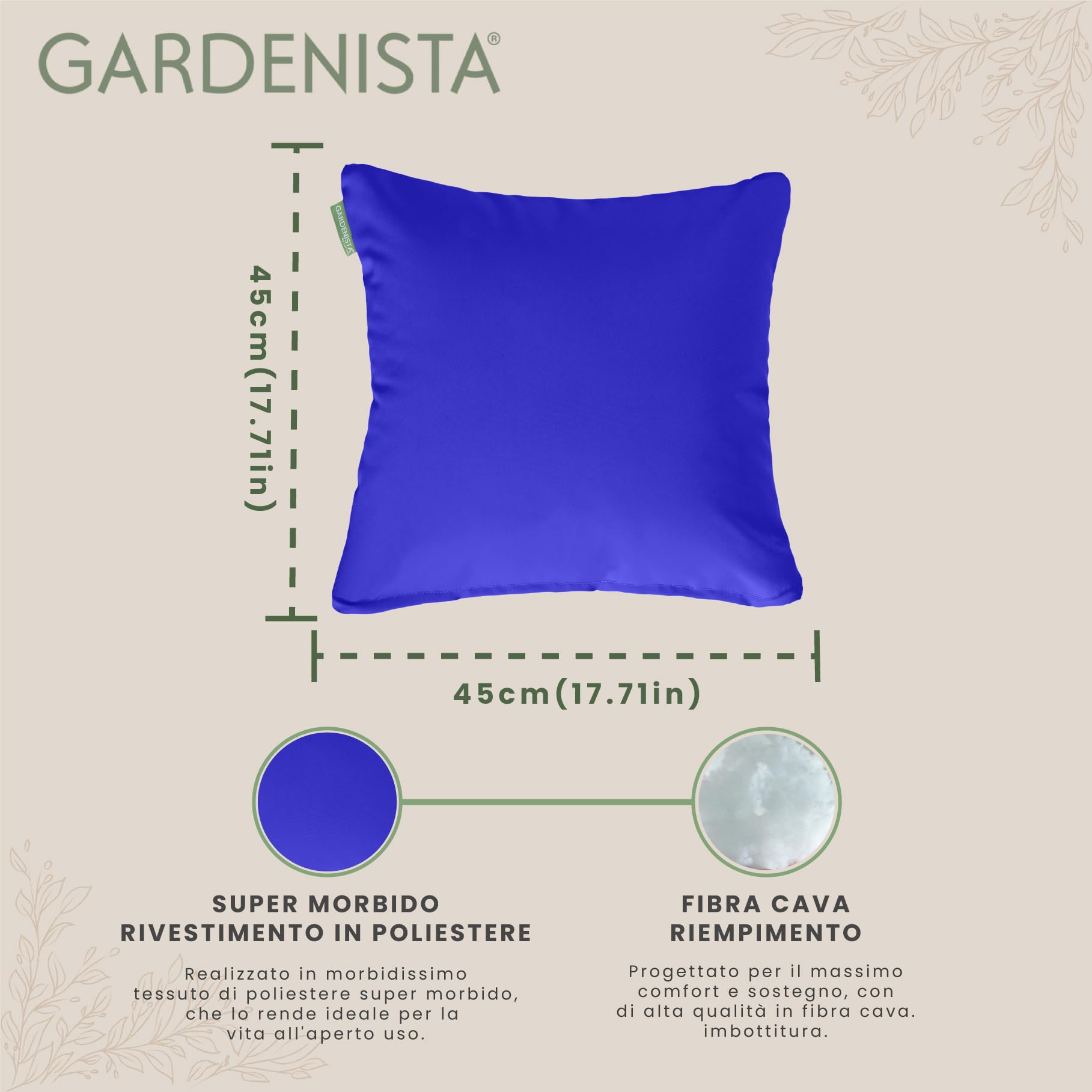 【FACILE DA PULIRE】 Il tessuto del cuscino decorativo ha una cerniera nascosta, quindi può essere facilmente rimosso e pulito con un panno umido. È anche possibile lavarli a mano o a secco. Con questi cuscini dai colori vivaci, scegliete il colore che più vi piace per completare la decorazione della vostra casa e del vostro giardino, i loro colori rimangono brillanti e non sbiadiscono, mantenendo il vostro spazio all'aperto bello per molto tempo. 【DISPONIBILE IN VARI COLORI】Il nostro cuscino imbottito, progettato con un comfort estremo in mente, offre la perfetta combinazione di stile e funzionalità con diversi colori. Con Gardenista, puoi fidarti di ottenere un prodotto di alta qualità che è progettato per durare.. Ciò significa che sono realizzati secondo i più alti standard di qualità e durata, garantendo che dureranno per le stagioni a venire. Questo cuscino versatile è perfetto sia per ambienti esterni, come giardini o patii, sia per spazi interni come casa, camera da letto, soggiorno. Godetevi il cuscino da giardino Gardenista per esterno. 【MATERIALI DI IMBOTTITURA】Il cuscino da giardino è realizzato in tessuto di poliestere resistente all'acqua e al fuoco e riempito con fibra cava per fornire un supporto ottimale per la schiena e il comfort. Cuscini Da Esterno Impermeabili Gardenista Cuscini Decorativo Per Esterni/Interni | Resistente All'acqua Federe Cuscini Divano Con Riempimento | Cuscino Scatter Per Sedie In Rattan | Leggeri Cuscini Per Divani 45x45cm (Blu, 8 Cuscini Da Esterno Economici