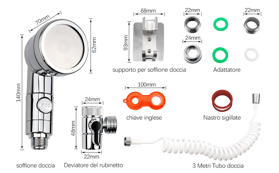 Anche con un uso intensivo, il tubo rimane in forma senza piegarsi. Questa costruzione garantisce affidabilità e un design raffinato nell'uso quotidiano Tubo Lavandino Bagno Doccetta Per Lavandino Bagno,Doccino Per Lavandino Universale,Con 3 Modalità Di Spruzzo,1.5m Tubo Telescopico Perfetto,Per Del Bagno,Anziani,Neonati E Animali Domestici Pulizia Anale Doccino 【Facile Da Usare】Doccetta per Lavandino Bagno si distingue per la facilità d'uso. Il Set di Doccetta Regolabile è perfetto per lavare i capelli, prendersi cura degli animali domestici o per l'uso da parte di anziani e persone con mobilità ridotta Grazie a queste opzioni, il Set di Doccetta Regolabile si adatta a diverse esigenze e preferenze 【Set Completo】Doccetta per Lavandino Bagno include tutti i componenti necessari: un doccino durevole, un deviatore affidabile, un tubo flessibile di 1,5 m e un pratico supporto a parete. 【Materiali Di Alta Qualità】Doccetta per Lavandino Bagno è realizzata in rame resistente e ABS di alta qualità, con una superficie galvanizzata che resiste alla corrosione, all'usura e all'uso prolungato, mantenendo un aspetto estetico elegante.