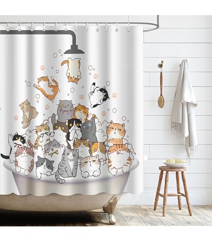 Topi Per Gatti QLXYYFC Tenda Doccia 180x200 Cm, Tenda Doccia Gatto, Tenda Doccia Animali Con 12 Ganci In Plastica, Tenda Bagno Tende Doccia Tessili Lavabili Per Doccia E Vasca (Color : White, Size : 80X180cm Tenda Per Gatti Funzioni: Tecnologia di stampa ad alta risoluzione, colore chiaro e naturale, più luminoso, non sbiadisce facilmente dopo un uso prolungato, materiale in poliestere di alta qualità, durevole, morbido al tatto, leggero, facile da trasportare Design interessante: Il divertente motivo gatto e topo, divertente, carino, chic, con colori accattivanti, sarà molto amato dai bambini e porterà una diversa vitalità nella tua stanza Nota: 1. Non candeggiare. 2. Lavabile in lavatrice, lavare a mano o pulire con un panno umido. 3. A causa della differenza tra i monitor dei computer, potrebbe esserci una leggera differenza di colore tra il prodotto reale e lo schermo. 4. A causa della misurazione manuale, potrebbe esserci una leggera differenza nelle dimensioni del prodotto. IN STOCK: 150x180 cm tenda da doccia gatto nero con zampe simpatico gatto divertente tenda da doccia gattino sfondo bianco tenda da doccia in fibra di poliestere bagno con ganci, LIN002064LH al miglior prezzo. Consegna rapida in tutta Italia Materiale di alta qualità: la nostra tenda da doccia è realizzata in tessuto di poliestere di alta qualità, impermeabile e può prevenire efficacemente il trabocco dell'umidità. Funzione: questa tenda da doccia per il bagno può fornire privacy e prevenire efficacemente il trabocco dell'umidità e mantenere il bagno asciutto. La parte superiore è dotata di 12 occhielli in metallo e può essere facilmente installata e rimossa con i 12 ganci in dotazione e si adatta a qualsiasi forma di asta per tenda da doccia Dimensioni: 72 L x 72 H (182 x 182 cm) con 12 ganci per la maggior parte dei bagni e vasche standard, la tenda da doccia può essere utilizzata da sola o con imbottitura È morbido, resistente, facile da piegare, leggero e facile da trasportare