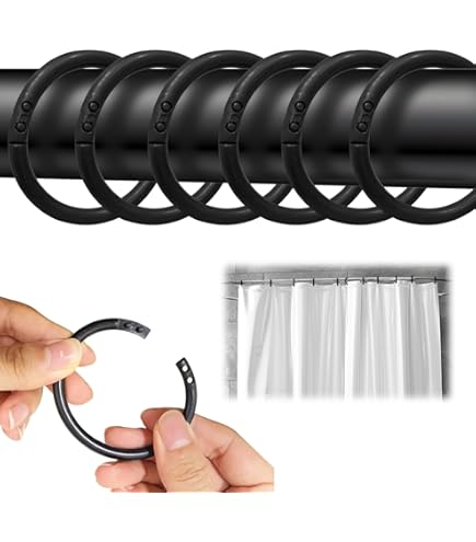 25 Anelli Neri Per Tenda Da Doccia, A Forma Di C, Ganci Per Tende