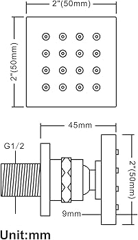 GLYYRLR Bocchetta Per Massaggi Oro Spazzolato Bocchette Laterali Per La Doccia In Ottone Regolabile Quadrato Getti Idromassaggio Doccia Rettangolare Ugello Per Massaggi A Parete, 50x50mm,1 Pack : Amazon.it: Fai Da Te