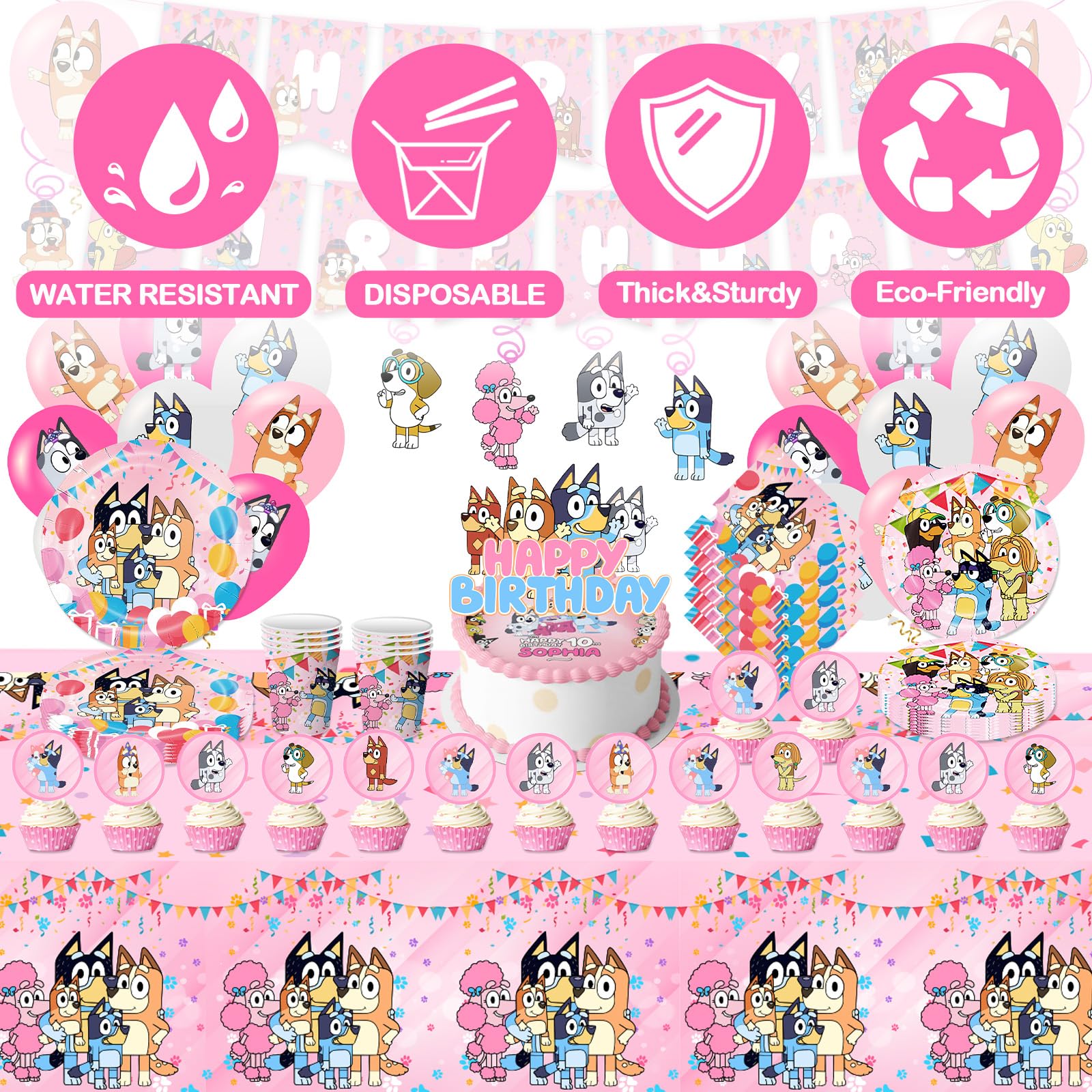 Stoviglie Per Feste Di Compleanno Kit 109PCSPezzi, Rosa Paw Dog Decorazione Stoviglie Di Compleanno Includere Piatti Carta, Striscioni, Tovaglioli, Bicchieri Carta, Tovaglie, Palloncini, Cannucce : Amazon.it: Casa E Cucina
