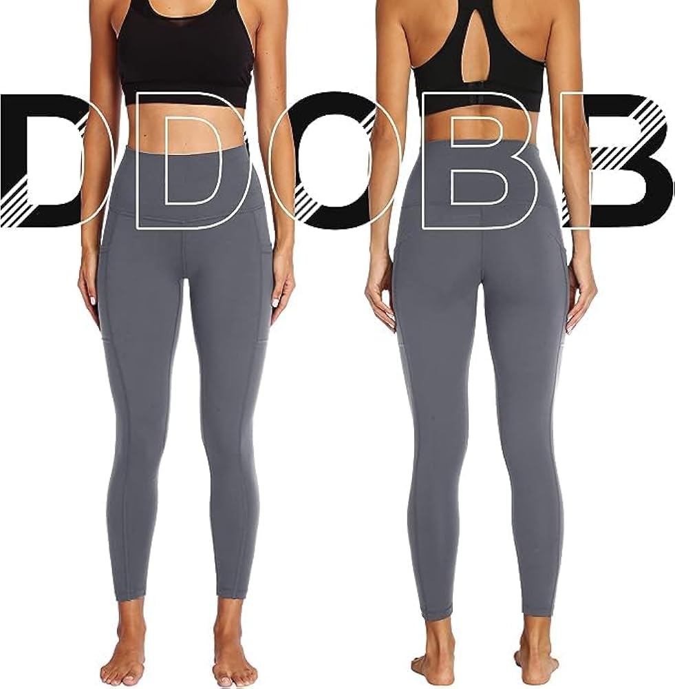 DDOBB Confezione Da 2 Leggings Sportivi Da Donna A Vita Alta, Leggings Sportivi Da Donna, Lunghi, Con Tasche, Per Palestra, Opachi, Neri, Sportivi, Elasticizzati, Per La Pancia, Per Il Fitness, Per La