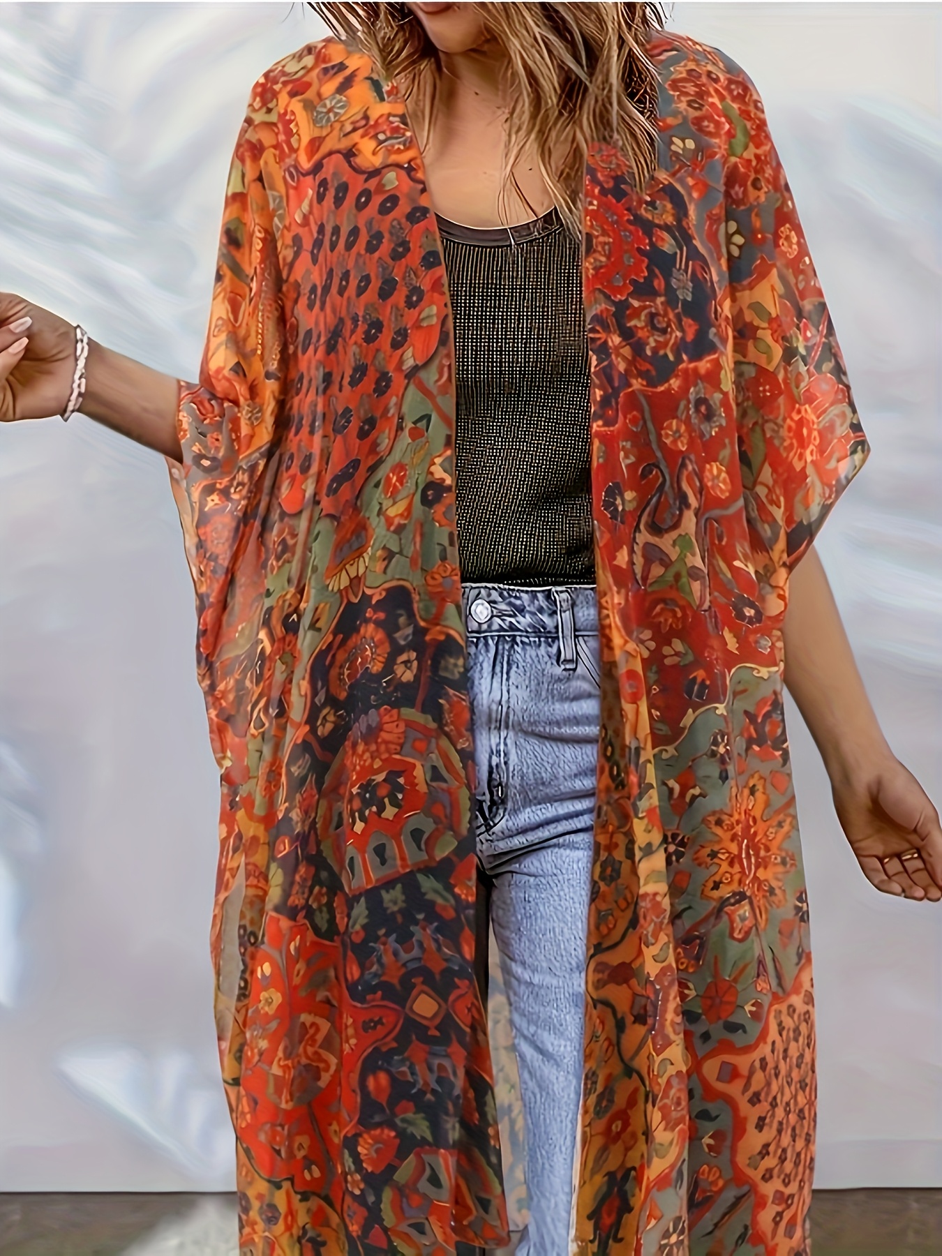 LA LEELA Chiffon Kimono Cardigan Lungo Donna Estivo Pizzo Boho Copricostume Abito Da Mare