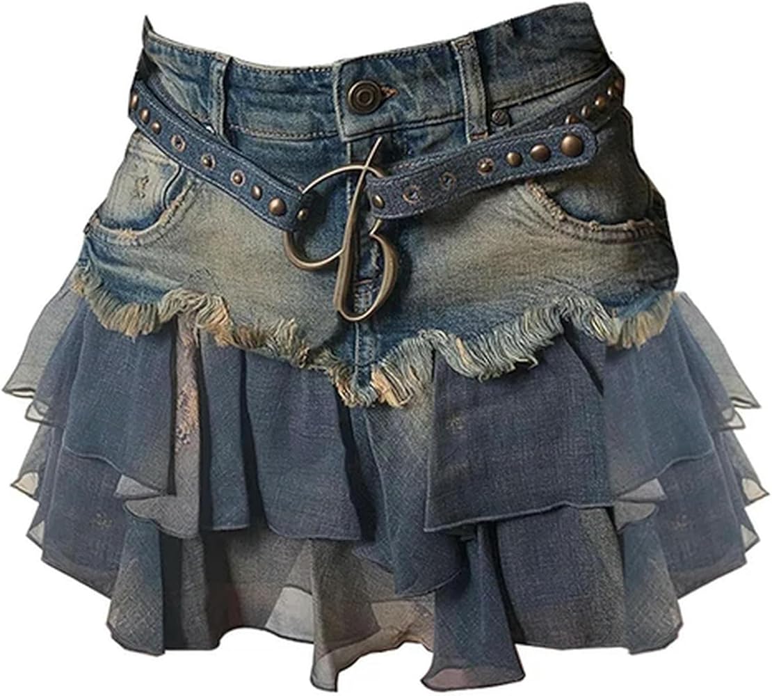 OLEETS Gonna Corta In Denim Da Donna - Gonna A Pieghe Donna Estate Autunno Stile Coreano Vita Alta Slim Gonne Spaccate Moda Vintage Party Streetwear Abbigliamento Taglie Forti,Blu,S