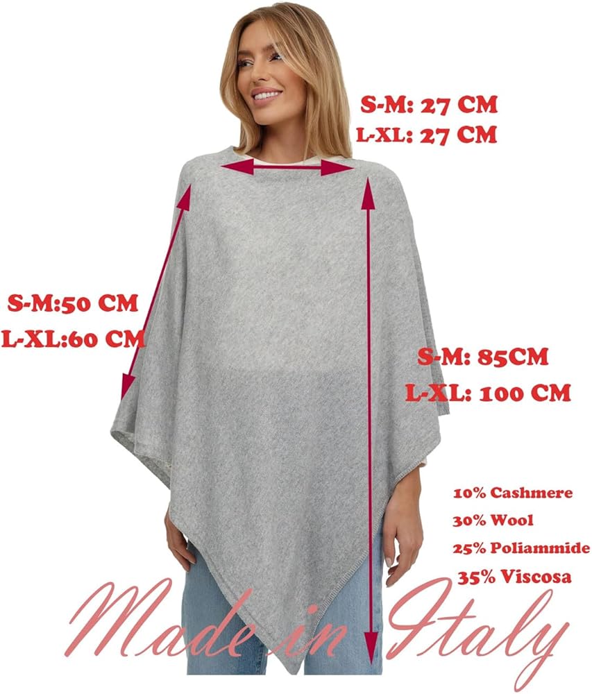 Colours & Beauty Poncho Donna Invernale Colore Grigio Chiaro| Mantella