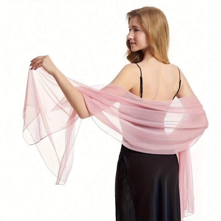 Scialle Chiffon Di Colore Unito Elegante Per Donne - Scialle E Coprispalle Leggeri E Setosi Per Abiti Da Sera, Scialle E Coprispalle Da Donna, Scialle E Coprispalle Eleganti Per Abbigliamento Da Sera