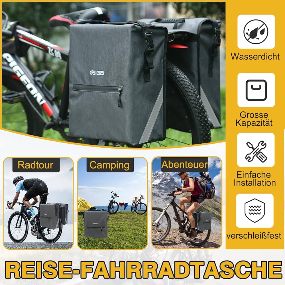 【Capacità extra large】: La capacità della borsa principale è di 40L con tasca interna con zip per telefono, carica, chiavi, ecc. 【Prestazioni impermeabili】: L'interno della borsa da bici con portapacchi posteriore è una sacca interna impermeabile in fibra di poliestere ad alta densità, che può superare la pressione dell'acqua di 6000MM. Universal, so suitable for the carrier of all common bicycle brands - Also suitable for electric bikes - Weatherproof - Capacity 40L - Foldable bottom for more sturdiness and convenient filling - Waterproof tarpaulin material - Attachment to carrier wit Borsa Bici Borsa Per Bicicletta, Doppia Borsa Per Bicicletta, Posteriore, Borsa Portapacchi Bici, cletta Impermeabile, Per Porta Pacchi Della Bici, Viaggi, Quotidiano, Campeggio, Rosso Borse Bici Tasca esterna con zip per riporre guanti, gopro, ecc. Il nastro riflettente sul retro consente la sicurezza durante la guida notturna Dotato di una copertura per la pioggia, non c'è bisogno di preoccuparsi di guidare nei giorni di pioggia La parte superiore con cintura retrattile aggiuntiva consente di riporre tende, sacco a pelo, vestiti, ecc Le borse da bici sono ottime compagne per le vostre attività all'aperto, come il ciclismo, il pendolarismo e i viaggi
