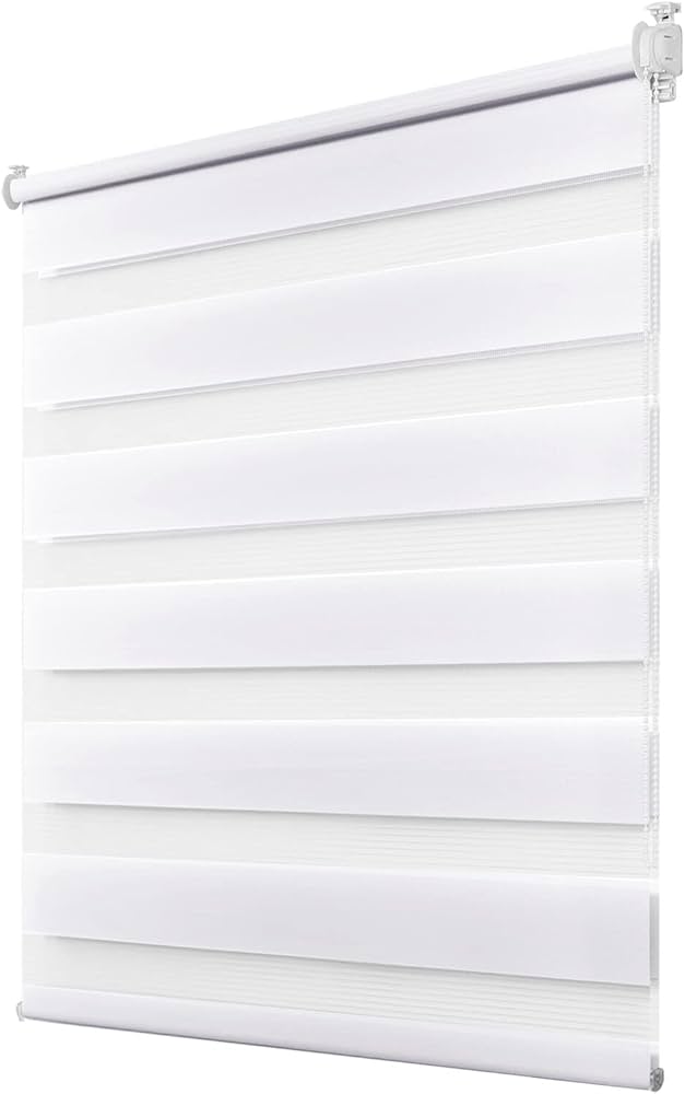 Deswell Doppia Tenda A Rullo, Fissaggio Senza Fori, Bianco