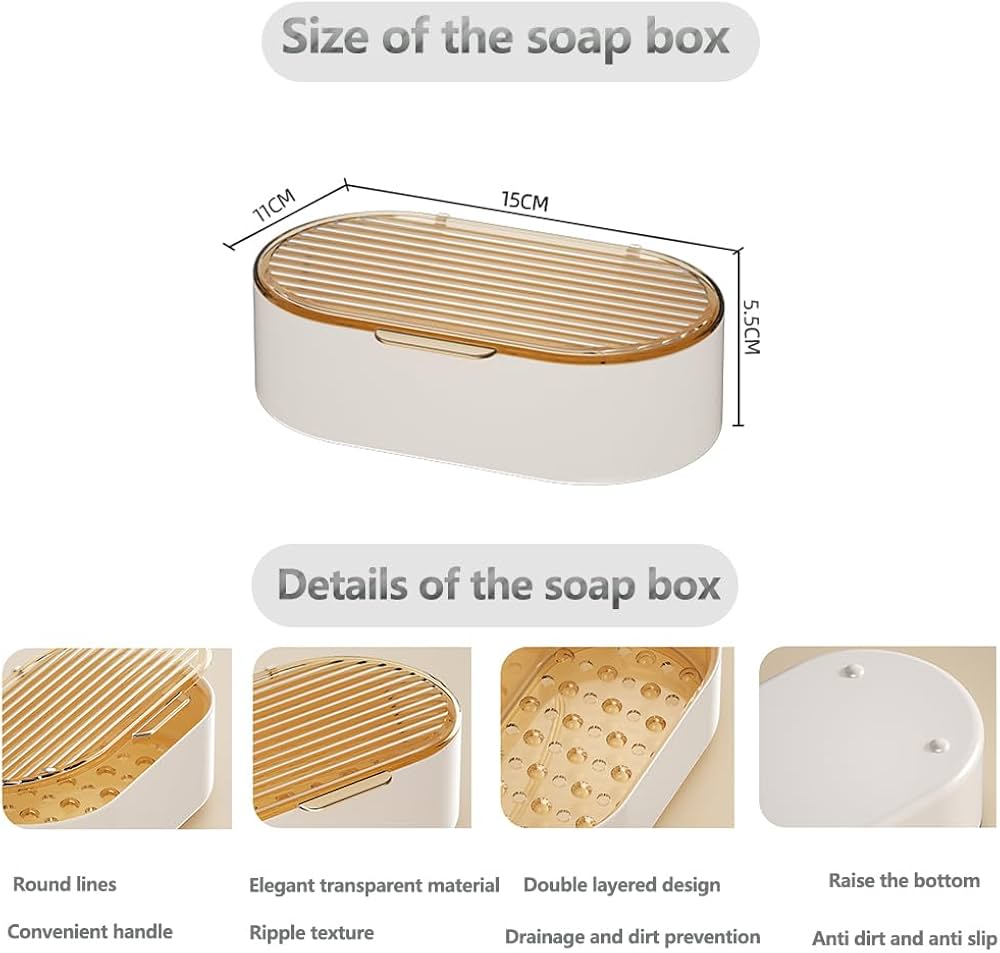 Porta Sapone Bagno Portasapone Da Viaggio, Doppio Strato Staccabile Portasapone Porta Sapone Cucina Specifiche del prodotto: Colore: giallo traslucido, verde traslucido Dimensioni: 15*11*5,5 cm/5,9*4,9*2,16in Materiale: plastica Il pacchetto include: 1 X Portasapone giallo trasparente 1 X Portasapone verde trasparente Note: 1. Si prega di controllare le dimensioni del prodotto prima di effettuare un ordine. 2. Se hai domande, ti preghiamo di contattarci, ti risponderemo entro 24 ore. Le migliori offerte per 2 Pezzi Portasapone Bagno Porta Sapone Solido con Coperchio Portasapone da Vi sono su Confronta prezzi e caratteristiche di prodotti nuovi e usati Molti articoli con consegna gratis! Vai al contenuto principale. Ciao ! Ciao! A PORTA SAPONE A DOPPIO STRATO: Portasapone Il portasapone a doppio strato è progettato con due strati: lo strato interno è scavato, lo strato superiore drena l'acqua e quello inferiore la cattura, evitando che il sapone lasci macchie d'acqua sul piano di lavoro. MATERIALE DI QUALITÀ: impermeabile Antigoccia Portasaponetta Realizzato in materiale PPS+PP di alta qualità per uso alimentare, bello e resistente, non facile da rompere, può essere utilizzato per lungo tempo, per proteggere il sapone. SEPARATO: Scatola Sapone Sigillata Portatile il design diviso rende facile la pulizia del portasapone ed evita l'accumulo di sporco. Il coperchio può essere facilmente aperto per un facile accesso al sapone, evitando polvere e sporcizia. COPERCHIO IMPERMEABILE: portasapone per doccia Il coperchio impermeabile è progettato per evitare che il sapone venga schizzato dall'acqua e mantenerlo asciutto e igienico.