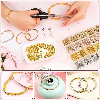 Perline Colorate Dotilili 1744 Pcs 4mm 6mm Spacer Beads Bracelet Making Kit, 8 Styles Perline Per Braccialetti 【Perline per Braccialetti】Include 1740 pezzi di perline distanziatrici, sufficienti a soddisfare le diverse esigenze di produzione artigianale di perline. Dotilili 1744 Pezzi Perle per Gioielli, 8 Stili Gioielli Fabbricazione Kit Perline Rotonde Metallo Perline Spalmatore oro Bulk per la Fabbricazione di Gioielli Collana Bracciale, 4mm 6mm 【8 forme e 3 colori】Include design di forme rotonde, stelle, corone, poliedri, cuori, tondi piatti, anelli di strass, forme quadrate, design in oro, oro rosa e argento. Ognuno di essi ha un foro, un cordoncino elastico e delle forbici in dotazione, facili da usare. 【Ampio utilizzo】Ottimo per bracciali, collane, orecchini, ciondoli, creazione di gioielli, decorazione artistica e artigianato fai da te. 【Materiale Resistente】Realizzato in ottimo materiale CCB, non perde facilmente colore, servendovi per lungo tempo. Ognuno di essi ha una superficie squisita e liscia e risplende sotto la luce del sole.